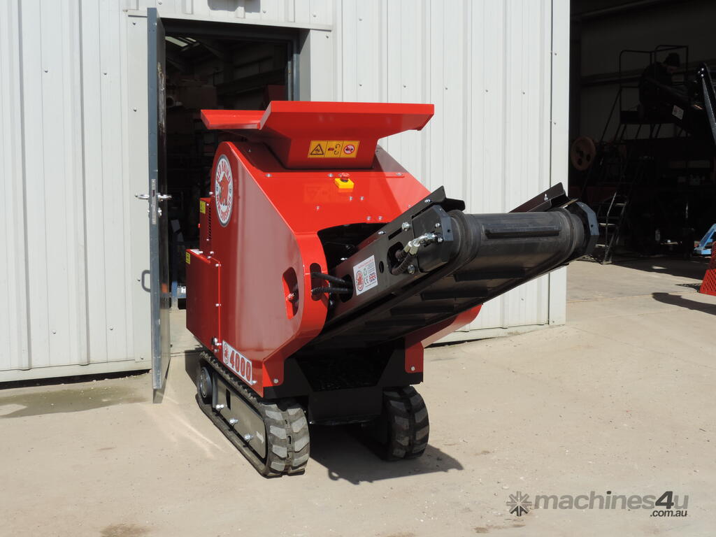 material having removed the conveyor belt. Removal of the output conveyor system is quick and easy. Engine: The engine is a Kubota 14hp diesel with a maximum rpm of 3600. The engine is economical using red or white diesel. The fuel tank capacity is 9 litres, with one litre of fuel lasting approximately 30 minutes. Tracks and Controls: Tracks are rubber and controlled by hydraulic levers. A fast-track lever is available for straight line tracking. Controls are simple and clearly labelled. A hydraulic oil cooler is fitted to ensure longer life of hydraulic equipment and for hotter climates.