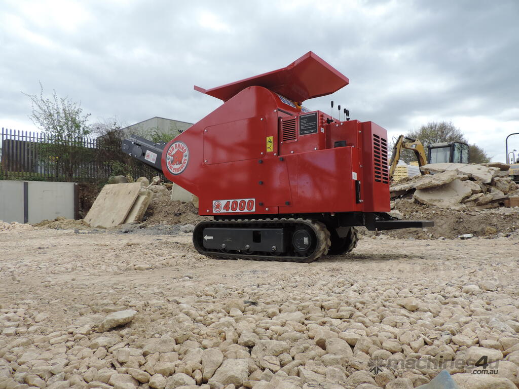 The 4000 series is 775mm wide and can travel through doorways, into rear gardens, and enter Sites where access and space is restricted. Instant hydraulically adjustable jaws allow for the adjustment of output product size, ranging from a choice of 10mm up to 100mm.