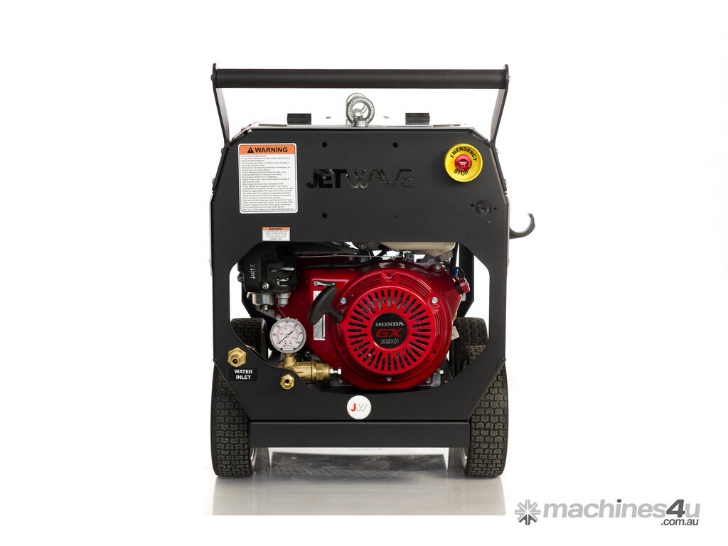 The Jetwave® Hornet G2™ revolutionises the single cylinder gearbox petrol driven cold water high pressure cleaner powered by HONDA™ Australian engineered and assembled; its innovation provides heavy duty users with a compact powerful, safe and easy to use unit that encompasses stainless steel exoskeleton (PEXO™) cover protection, centralised control & multi-configurable design. Volume max. (l/min): 13