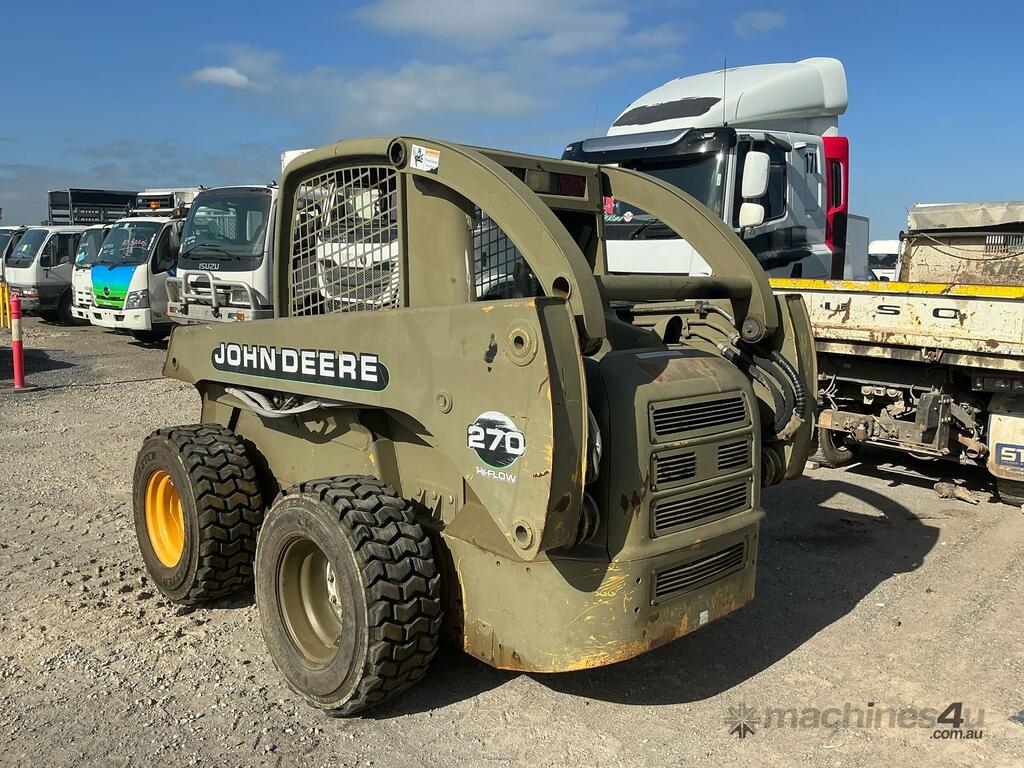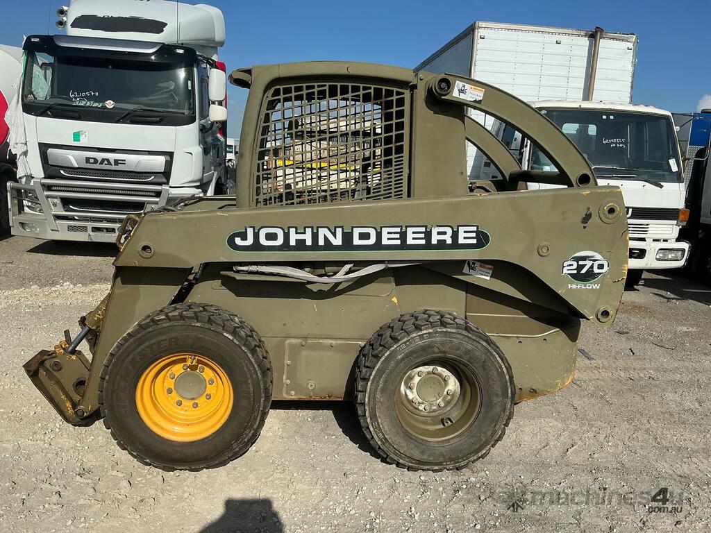 No C/P,John Deere,270,Wheeled Skid Steer,4 Cyl,Diesel,Odometer not visible,Hourmeter not visible,Colour: Drab Olive,Unregistered NSW,Serial No: KV0210E370167,Sold with No Plates