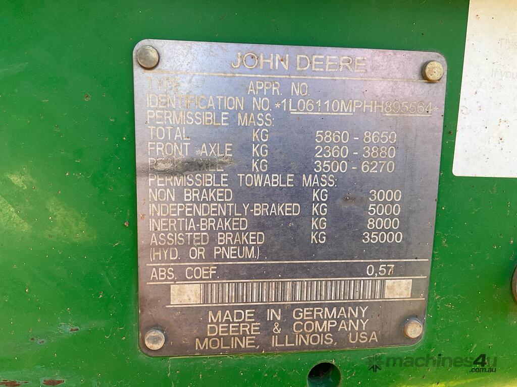 No C/P,John Deere,6110M,4x4 Tractor,4 Cyl,Diesel,10369 (Hrs. Showing),Colour: Green,Unregistered,Serial No: 1L06110MPHH895564,Sold with No Plates