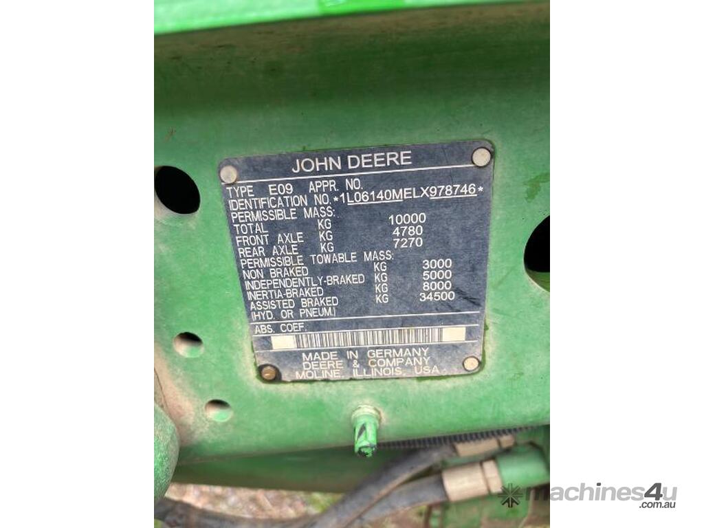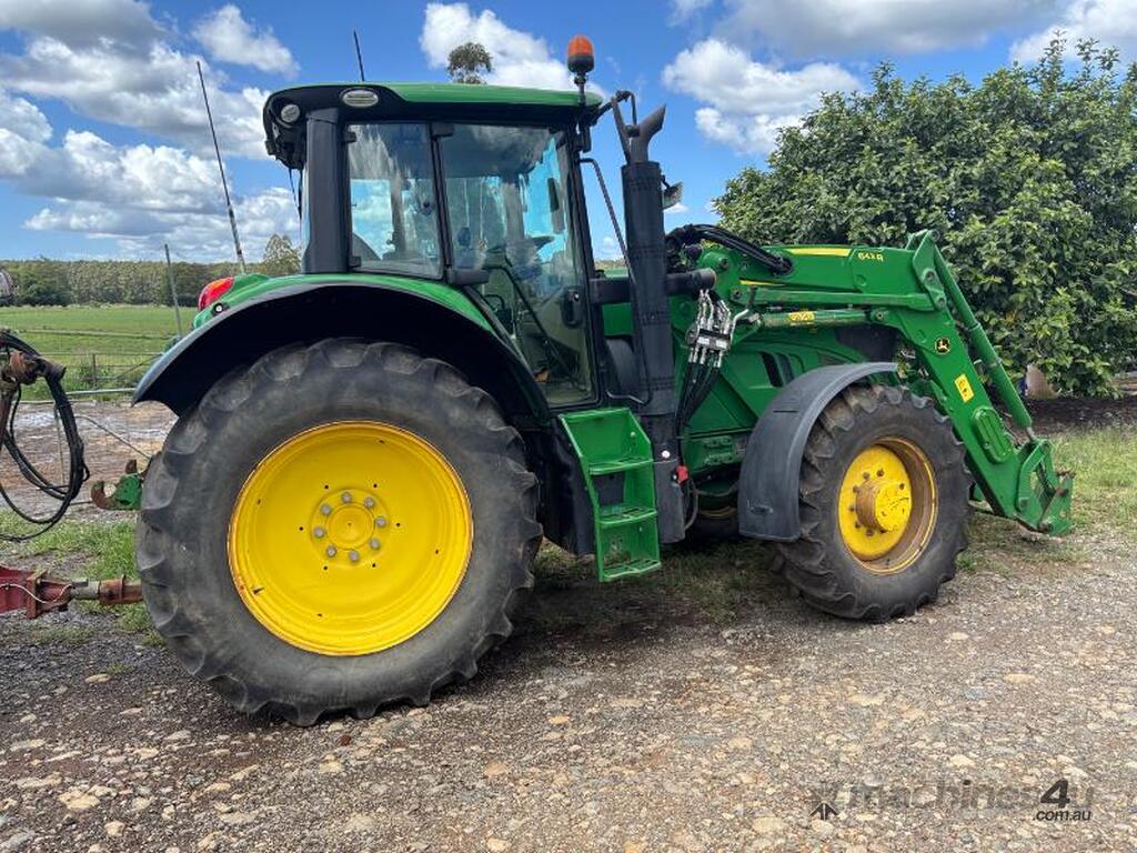 John Deere 6140M Tractor and 643R Front End loader + equipment, Euro Hitch 2 point linkage on the front, handbrake needs work. Comes with; silage grab, needs new hose and welding, a 1 tonne counter weight, forks, light materials bucket, 4 in 1 bucket, hay spikes (5 spikes), with an adapter plate for a Euro Hitch.