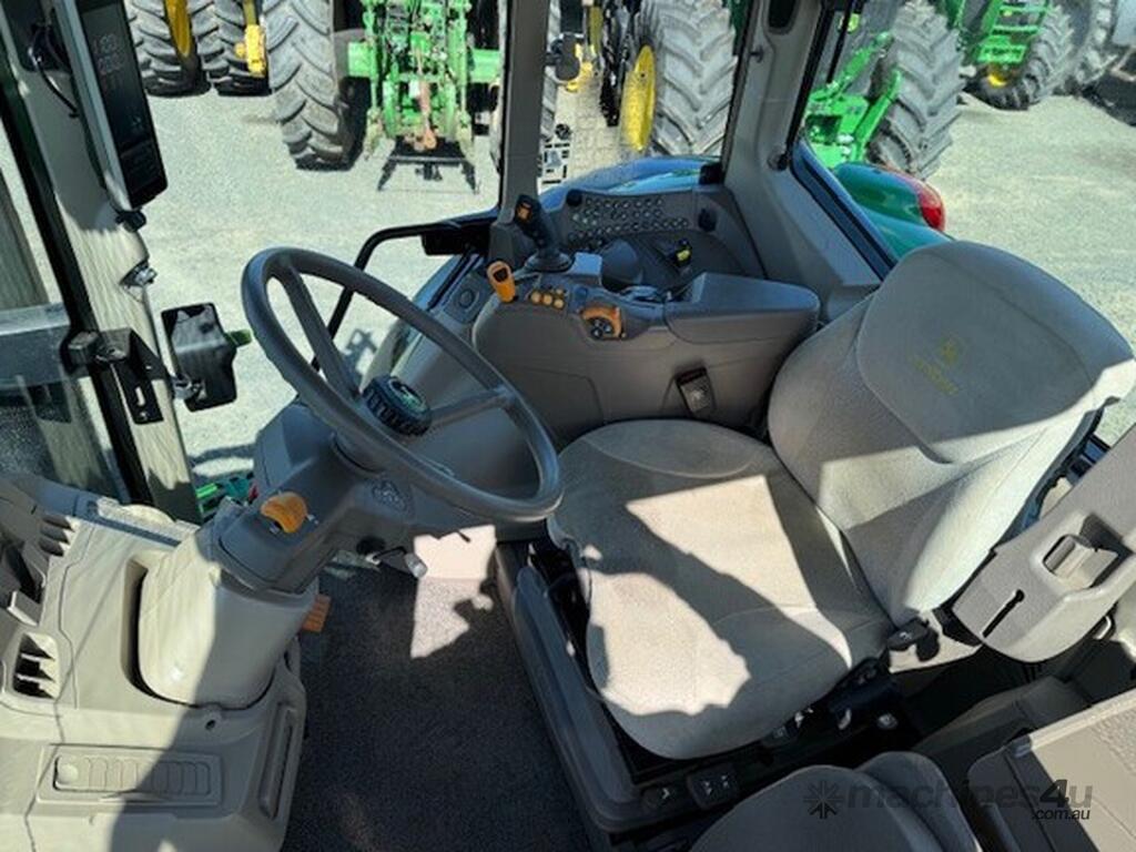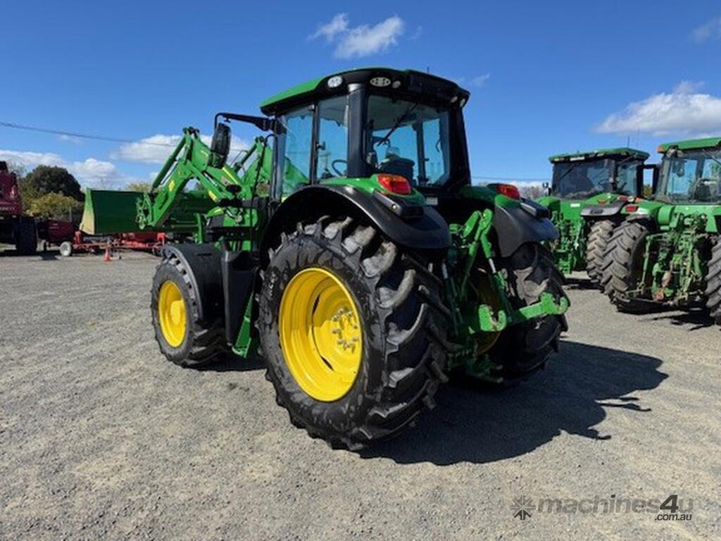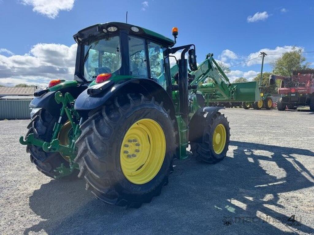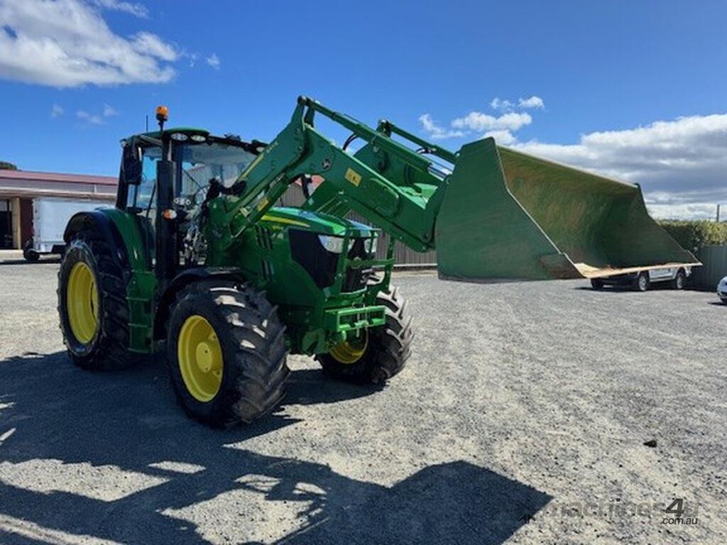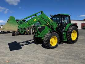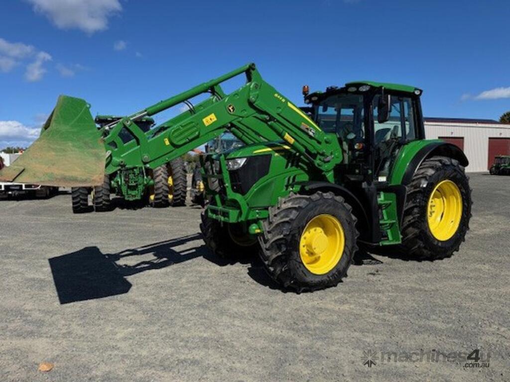 John Deere 6155M MFWD Cab Tractor fitted with 643R self levelling loader, 2023 model, 155HP 6.8L 6 cylinder John Deere engine Teir 2 (no AdBlue), 40km/h 20F/20R Command Quad Transmission, 6M cabin with Command Arm, 3 rear electro-hydraulic remote valves, Electro-hydraulic loader joystick, Auto Trak ready, TLS front axle suspension, mechanical cabin suspension, Premium light package, turn-able front fenders, 650/65R38 rear tyres and 540/65R28 front tyres, 855 hrs, well spec’d low hour machine, $185000+GST