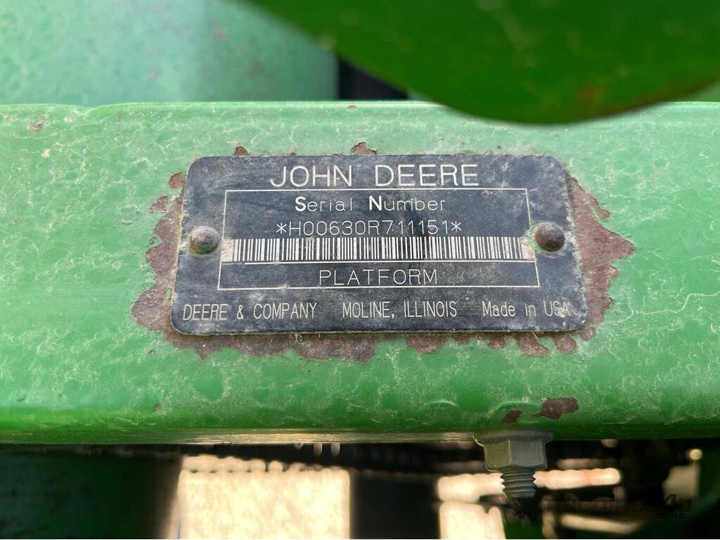 No C/P,John Deere,630R,Header Front,Odometer not visible,0 (undefined),Unregistered,Serial No: H00630R711151,Sold with No Plates,WOVR Status: WOVR N/A,Incident Type: Impact