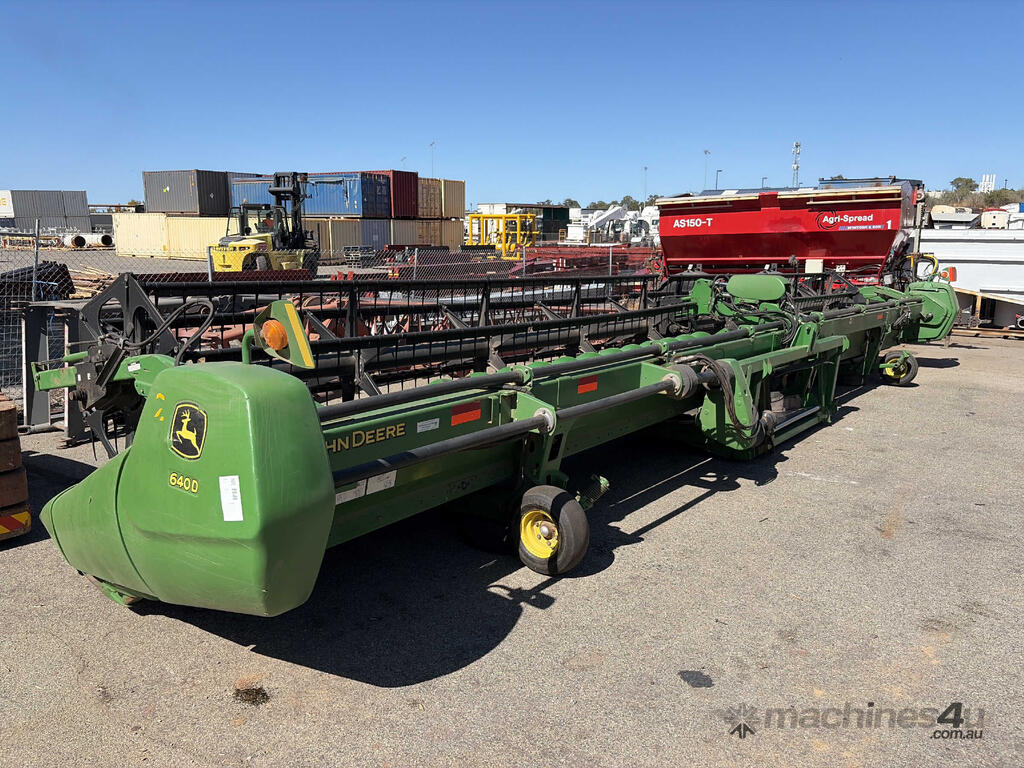 No C/P,John Deere,640D,Draper Front,Odometer not visible,Hourmeter not visible,Colour: Green,Unregistered,Serial No: 1H00640DEDR755330,Sold with No Plates,WOVR Status: WOVR N/A,Incident Type: Impact