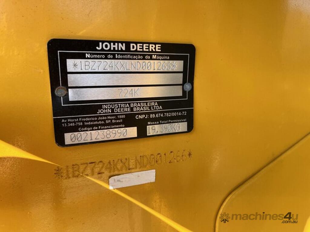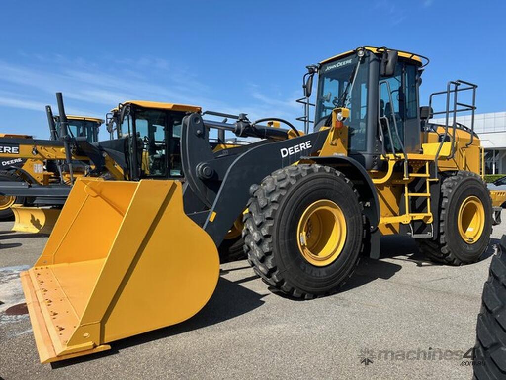 John Deere 724K Wheel Loader, 9L Tier 3 (Diesel Only) Engine, 197 kW (264 hp), 5 Speed Lock Up Torque Converter Transmission, 23.5R25 Rims & Tires, John Deere , 20T Loader, 3.6m3 GP Bucket with BOCE, Battery Isolator, AM/FM Radio, Reversing Fan, Ride Control, Engine Pre Cleaner. 36M / 3,000 Hour Comprehensive Warranty.