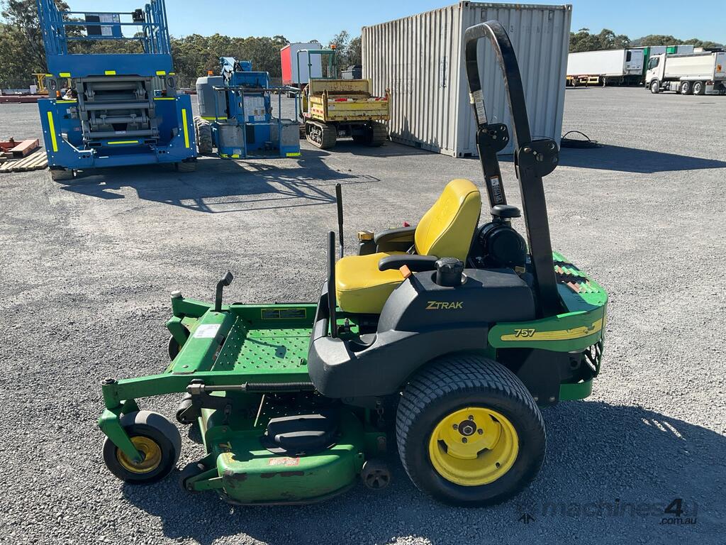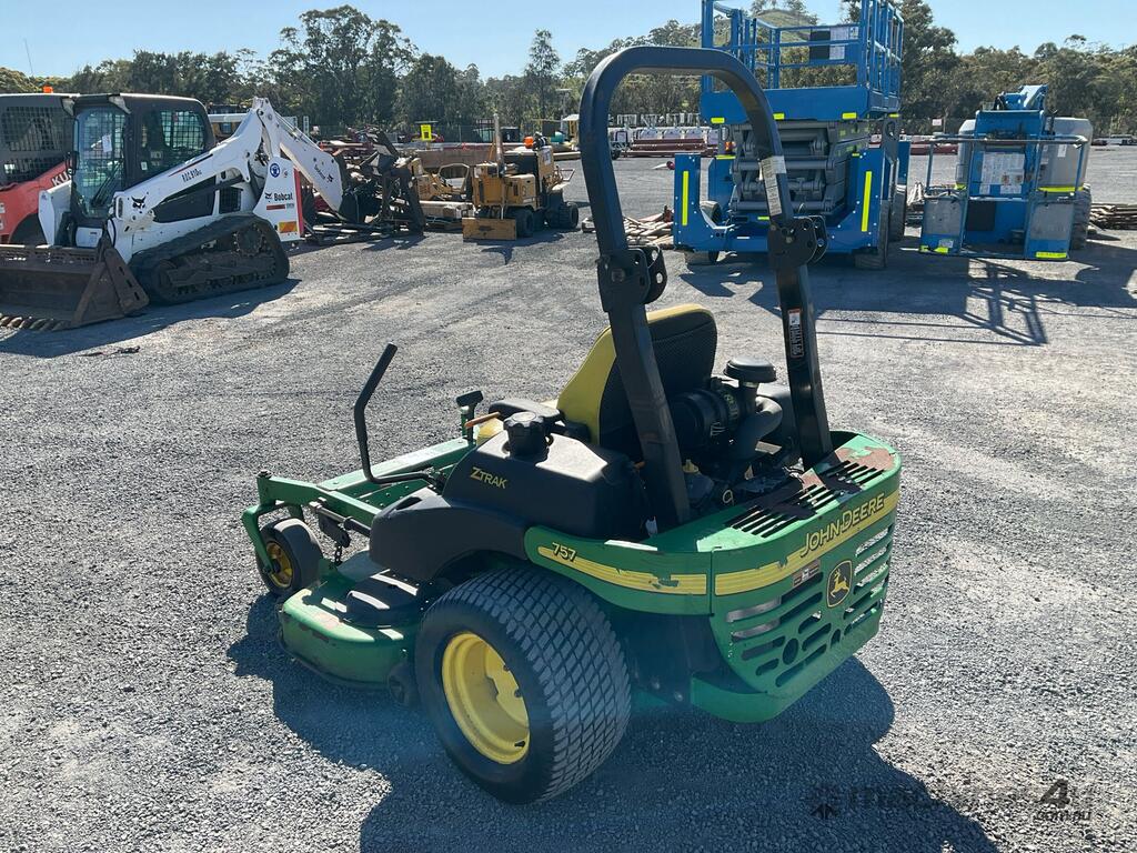 No C/P,John Deere,757 ZTrack,Zero Turn Ride On Mower,2 Cyl,Petrol,Odometer not visible,761 (Hrs. Showing on Hour meter),Colour: Green,Unregistered,Serial No: TC0757A060673,Sold with No Plates,Key No: 133E