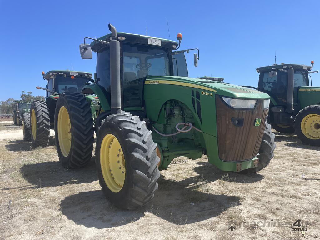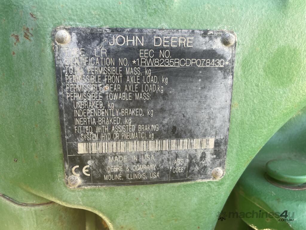 No C/P,John Deere,8235R,Row-Crop Tractor,9 Ltr,6 Cyl,Diesel Turbo,16 Gears,Odometer not visible,11717 (Hrs. Showing on Hour meter),Colour: Green,Rego. No: NP(1B927C), Unregistered QLD,Serial No: 1RW8235RCDP078430,ROPS No: undefined,Sold with No Plates
