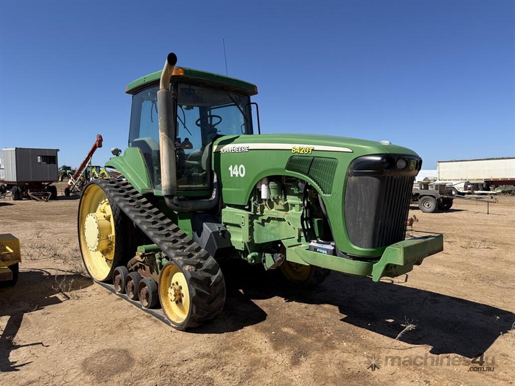John Deere 8420T Tractor. Hours read 531.9 (likely to be 10,531.9hrs), 3PL and quick hitch, cracket bonnet, has and motor issue beleived to be head gasket. Not currently running, inspection recommended. Item is a part of a major ag reduction sale. Located between Mungindi and Dirranbandi.