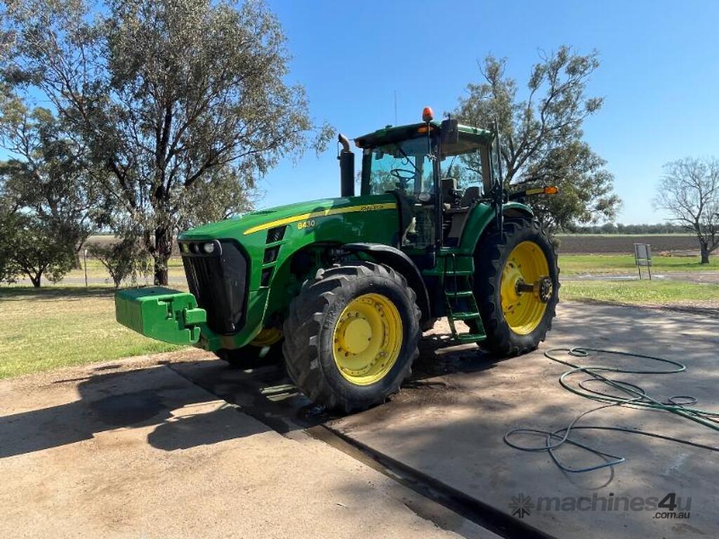 2007 John Deere 8430 300 hp FWA tractor. 11158 hrs, tuned to 320 hp, just serviced and full service records available, interior refurbished like new, 100% paddock ready, everything works as it should, tyres 60% rear, 40 % front. C/W front and rear duals. Front duals 95%, rear duals 40%. PTO, 3PL, Quick hitch, 4 x remotes, 2 x return, complete set of front and rear weights. SF1 receiver only, no screen. Crop work only, will not find better.