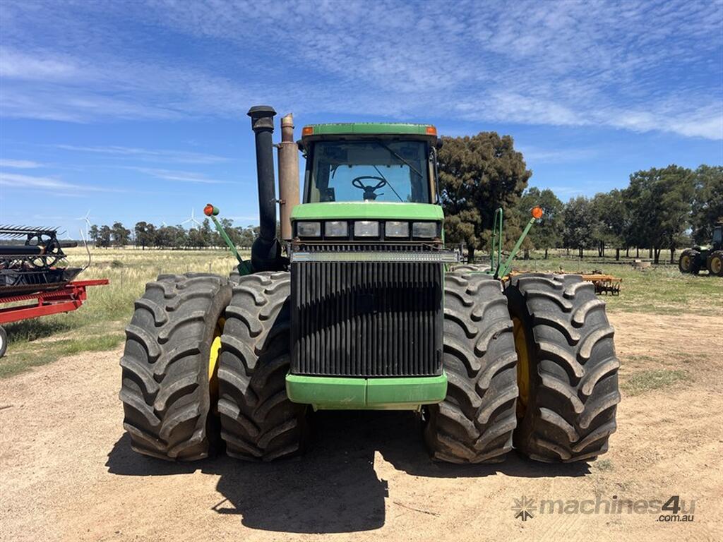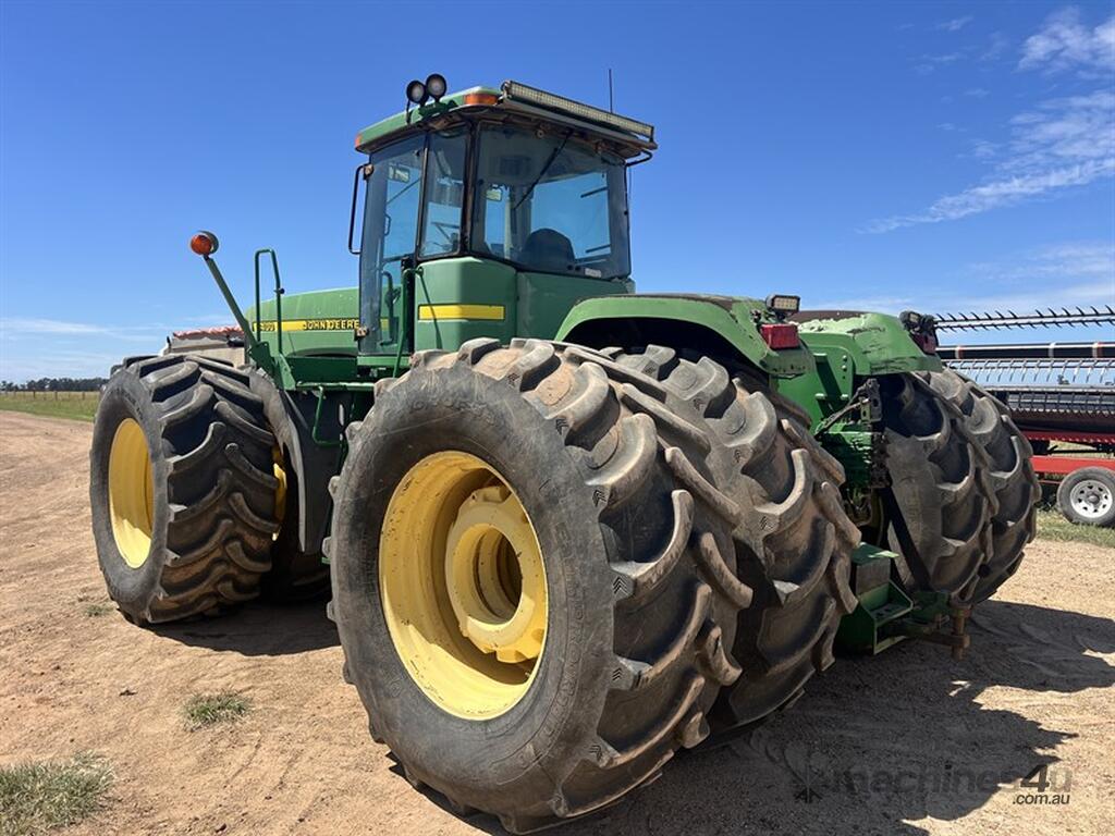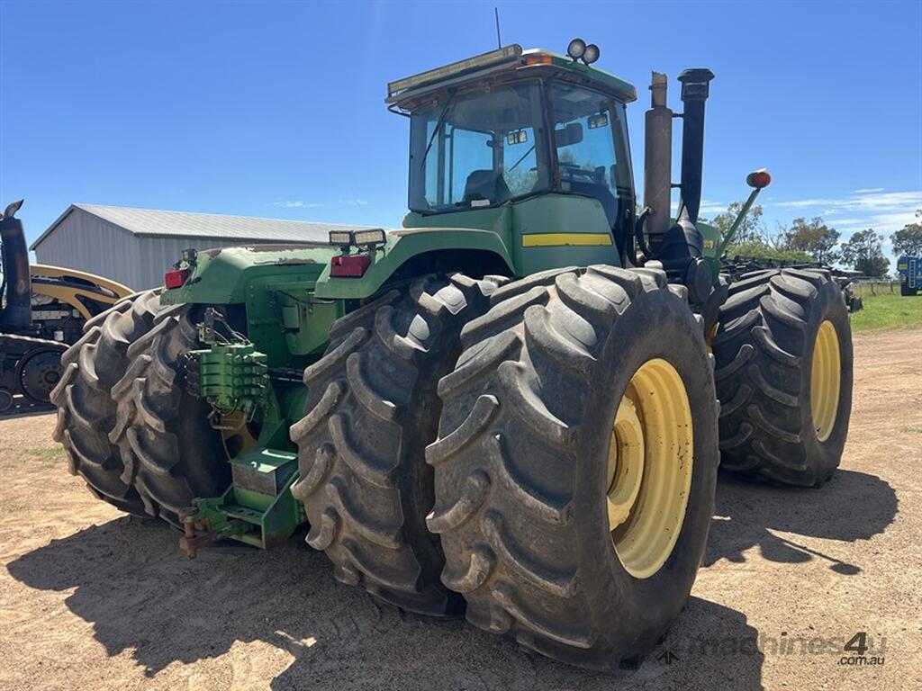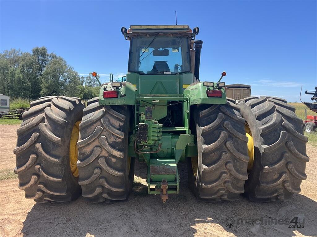 JOHN DEERE 9400 4WD Tractor. 8461hrs, Quad Box Transmission, 710/70R38 front & rear duals. 70%-80% rear wheel weight, Cabin food, UHF, radio, 4 remotes, rear weights x20, Light bar, bonnet good. Vin No RW9400H011018. Available at MRE Auctions "Pye Reduction Sale" Clearing Sale. Contact Grady Sinclair on . Located Miles, QLD.