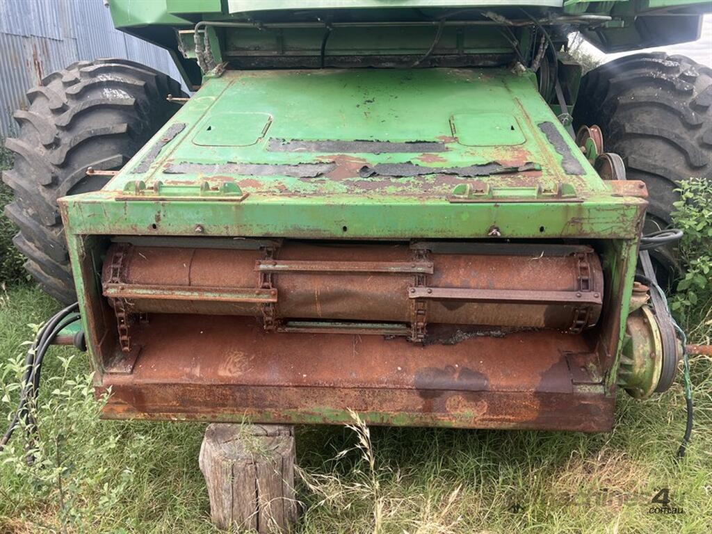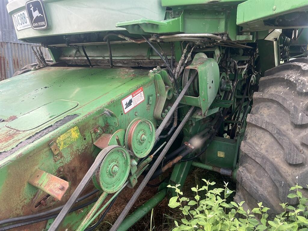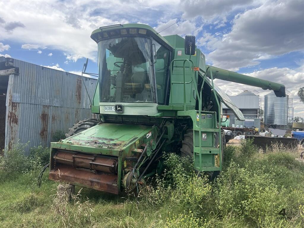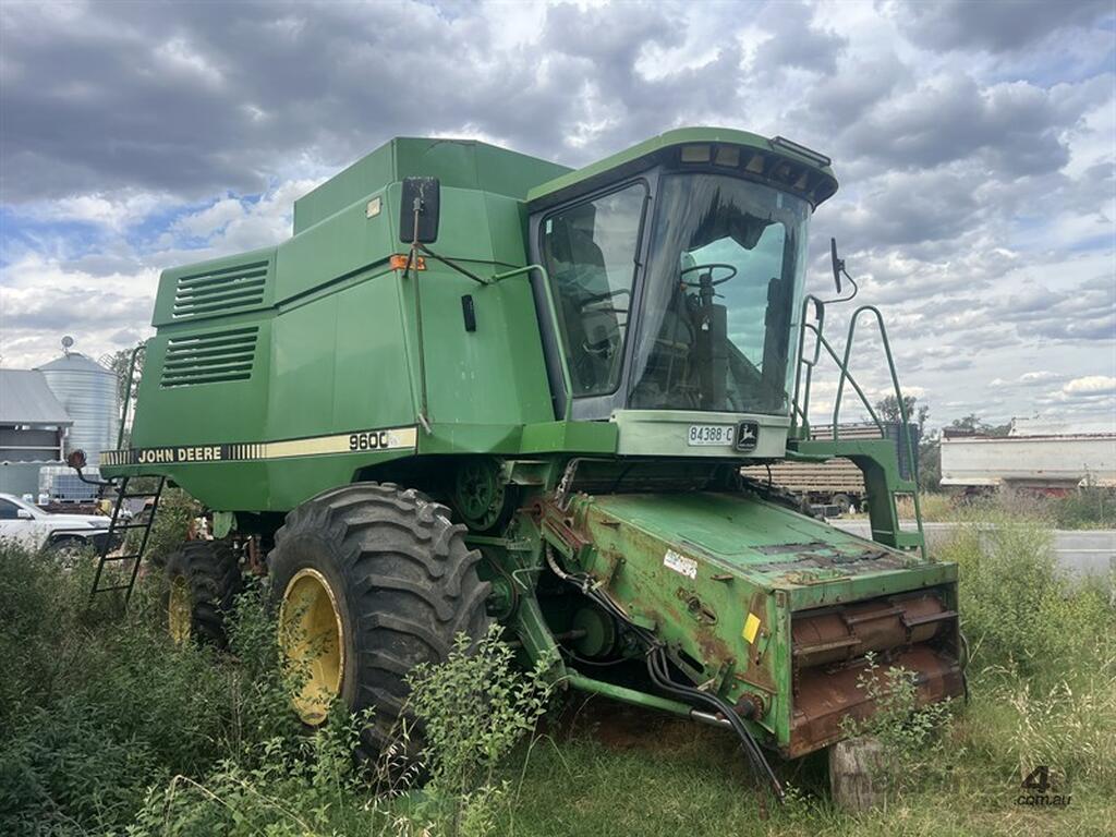 John Deere 9600 Header. Engine goes, machine goes, needs new hydro to run, front tyres are being switched with the ones in photograph before being sold. Located near Warialda, NSW. Available at MRE Auctions.