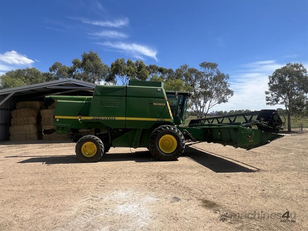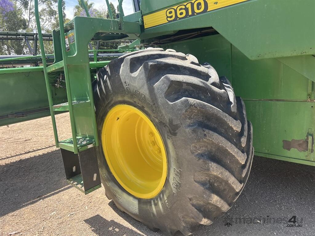 John Deere 9610 w/ 930 Front & Comb Trailer. 6089 engine hrs, 4199 rotor hrs, spiral reconditioned, straw chopper, $6000 worth of new drum bars (10 of), drum bars good but comes with the spares, 30ft front, always shedded, well serviced, feederhouse chain 1 year old approx. Located near Warialda, NSW. Available at MRE Auctions.