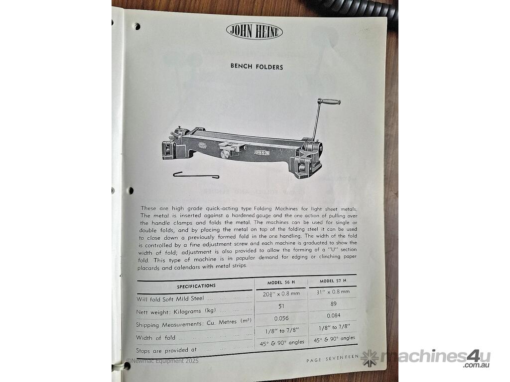 We have a quality Australian-made John Heine 57H Bench Folder available in good used condition. John Heine machinery is well known for its solid construction, reliability, and long service life, making this a great choice for light fabrication, electrical work, signage, and general sheet-metal applications.