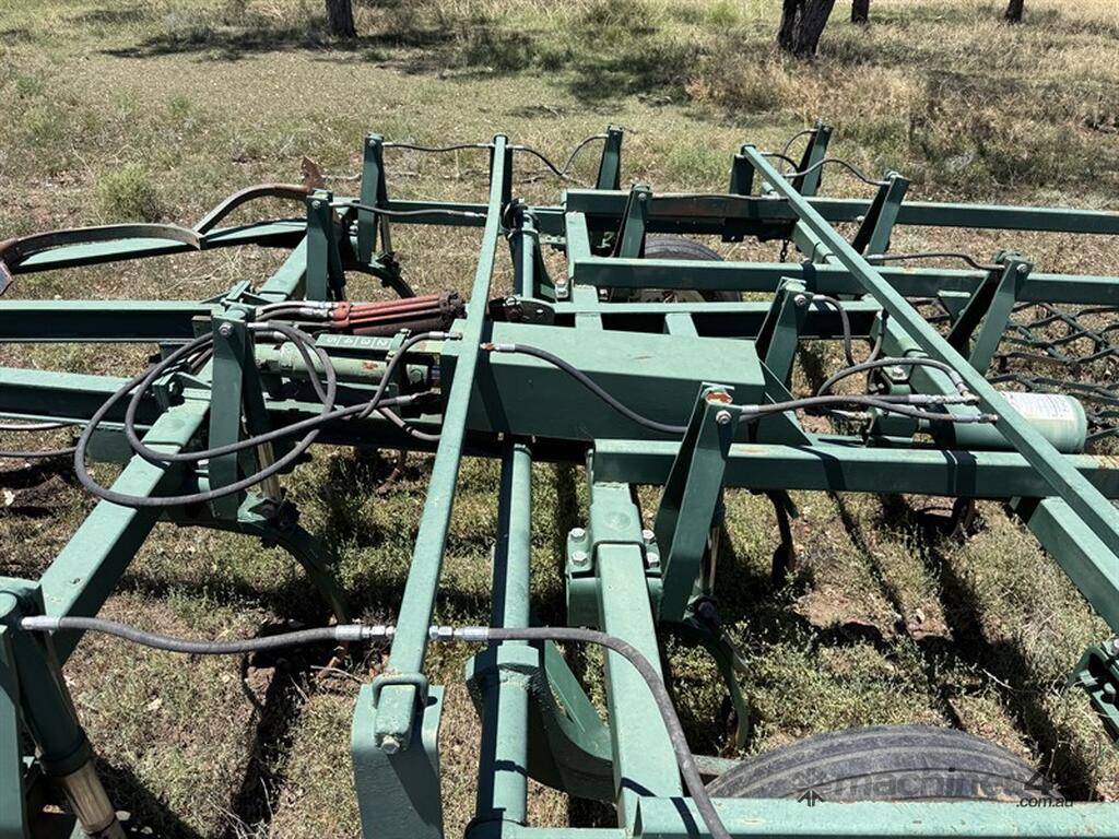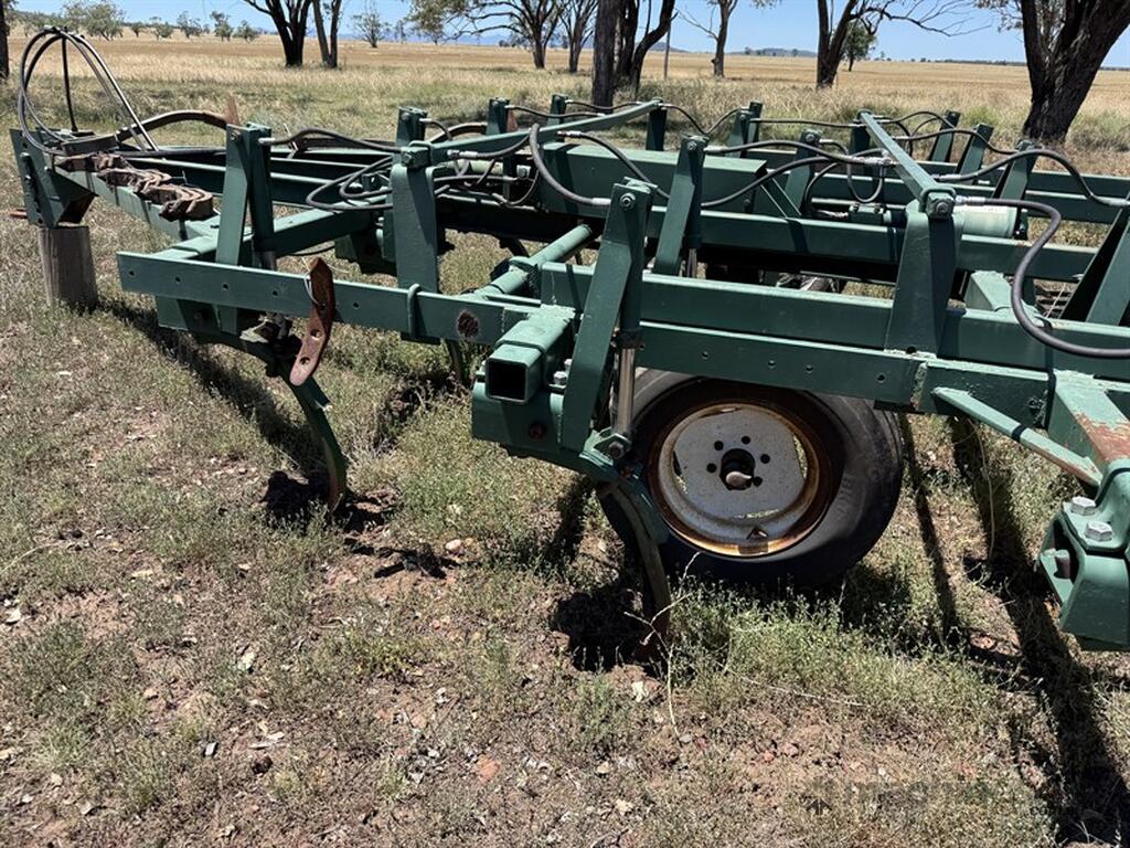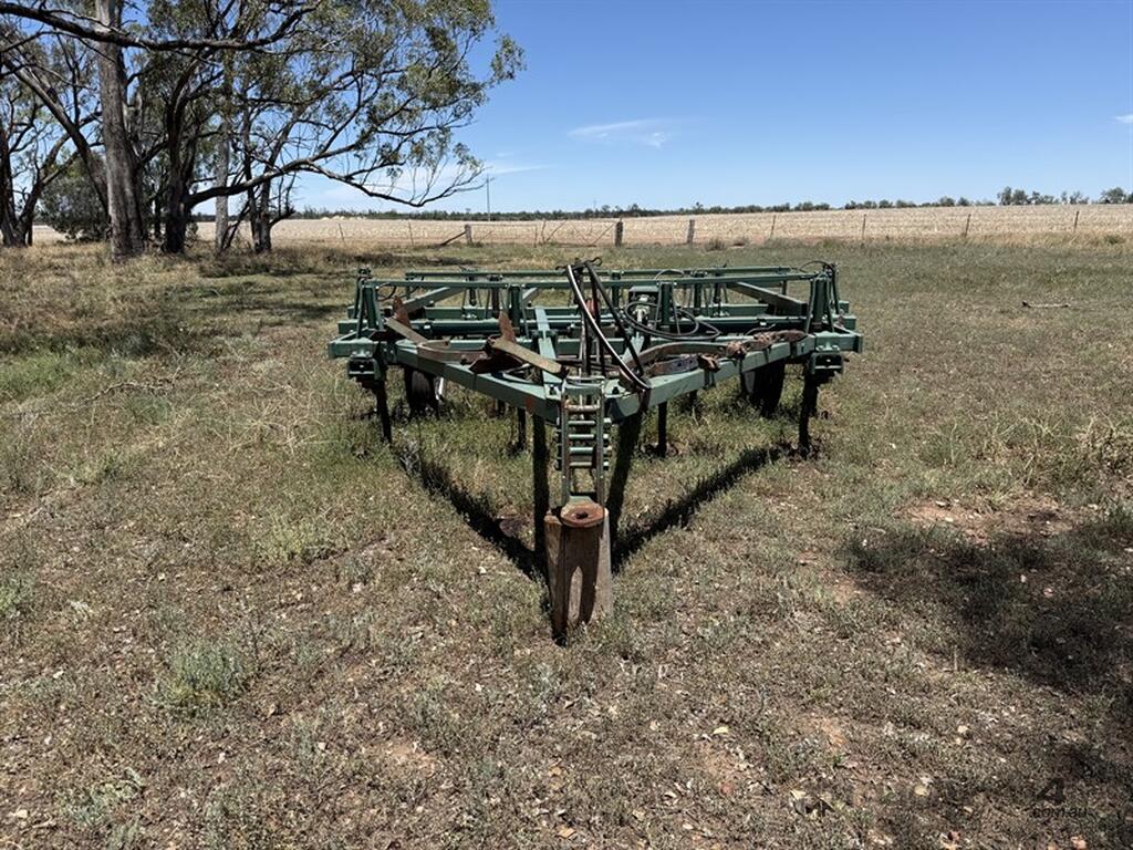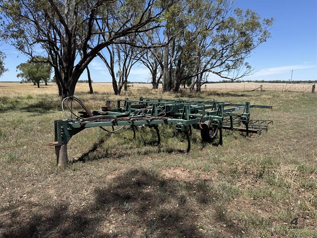 John Shearer Chisel Plough. Sold with trailing harrows. Located at Bellata NSW, available at MRE Auctions online sale.