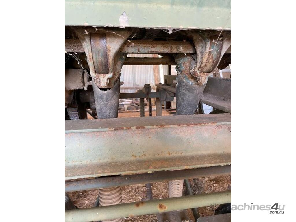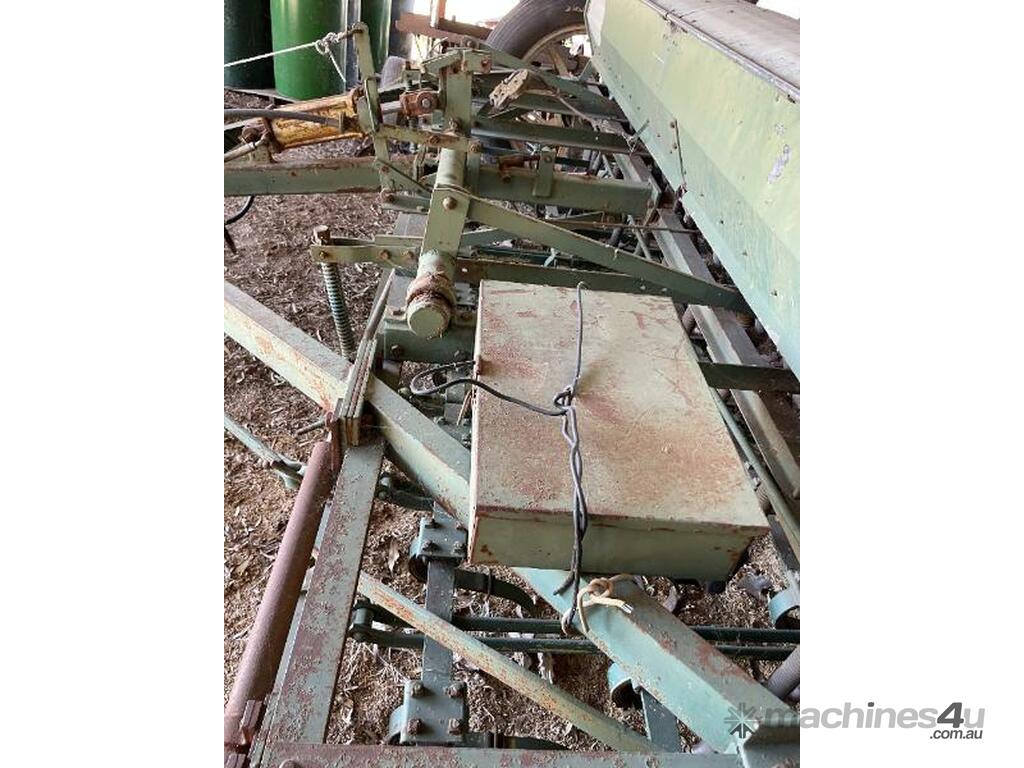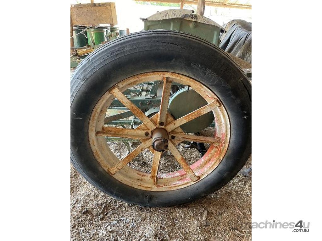 John Shearer 20 run, tyne combine. Most rubber boots and tubes looked to be in tacked, The tyres hold air but are old and cracked (see photos). It has a hydraulic ram and hoses attached, in working condition.