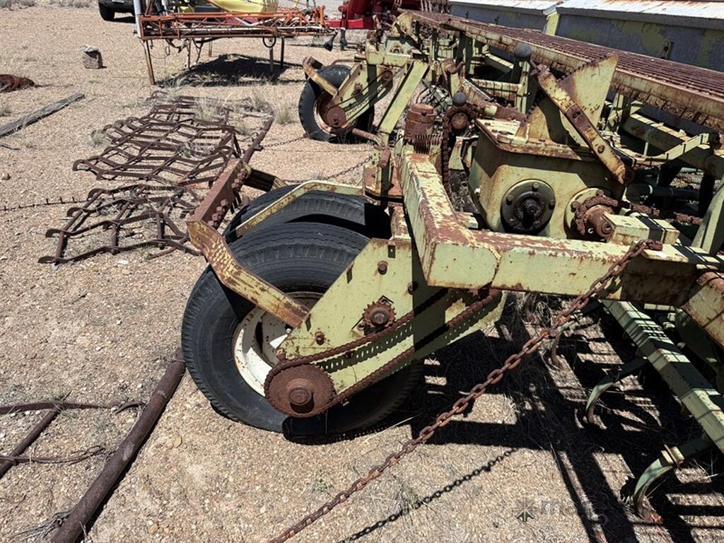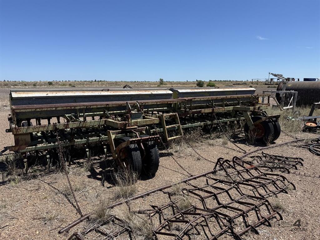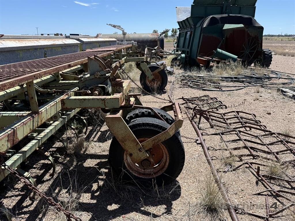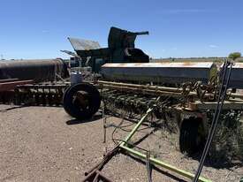 John Shearer Combine. Has some flat tyres but was working when sat down, sold with parts including gearboxes (current gearboxes still should be fine). Located at Moree NSW, available at MRE Auctions online sale.