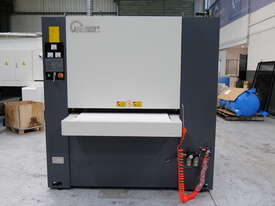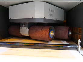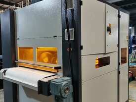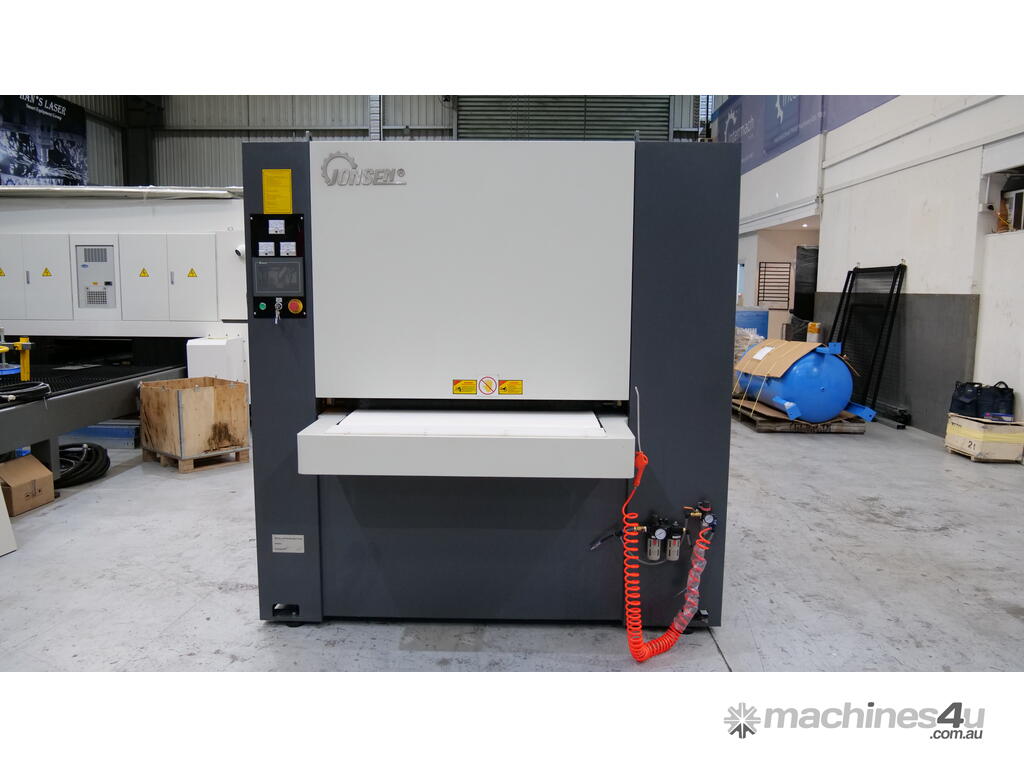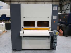 The first station is a wide belt grinding type for the removal of large burrs.