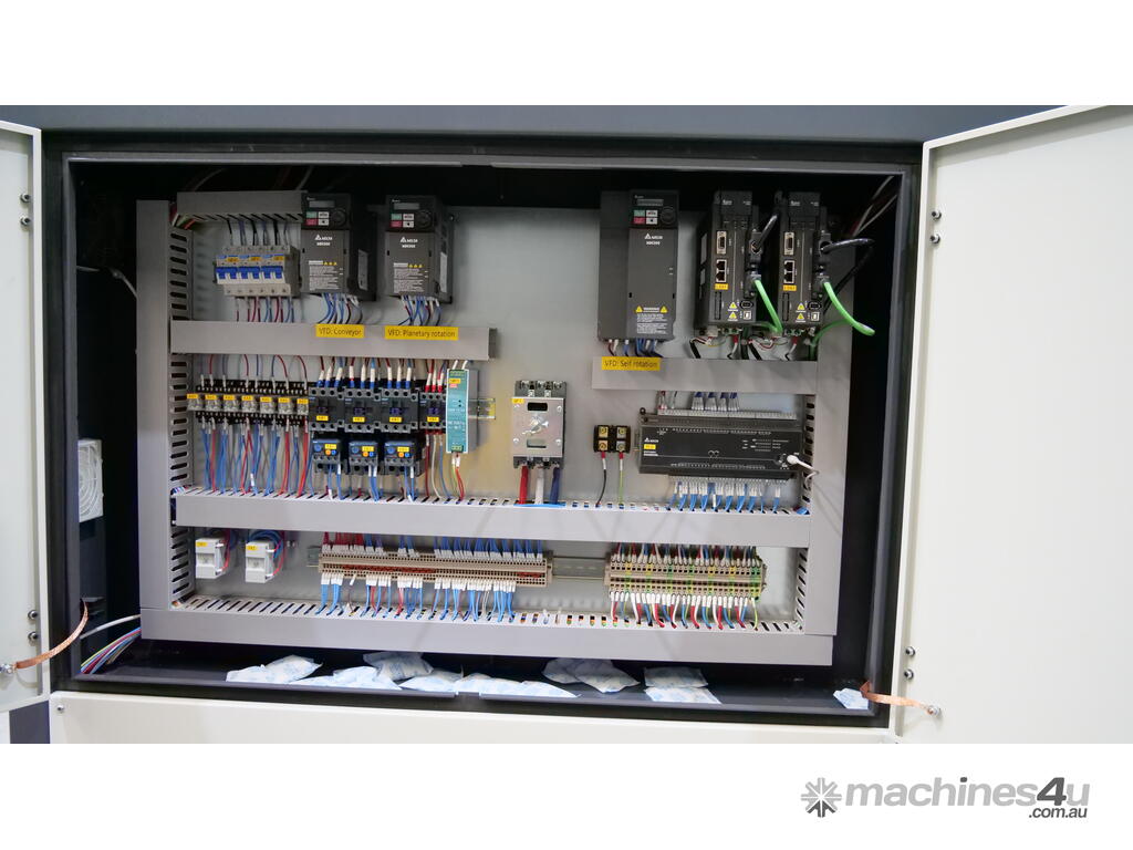 conveyer is variable for even deburring, controlled by inverters.