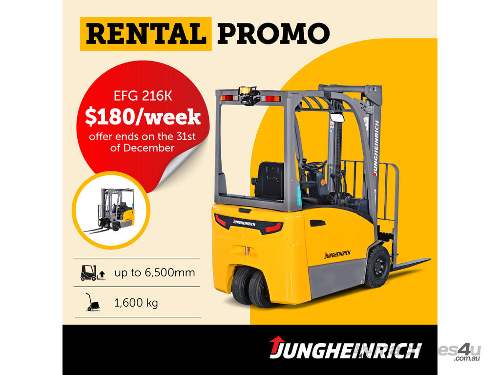 Secure the Jungheinrich EFG216k electric forklift from just $180/week.