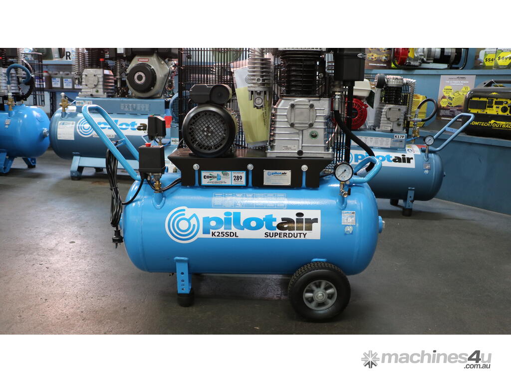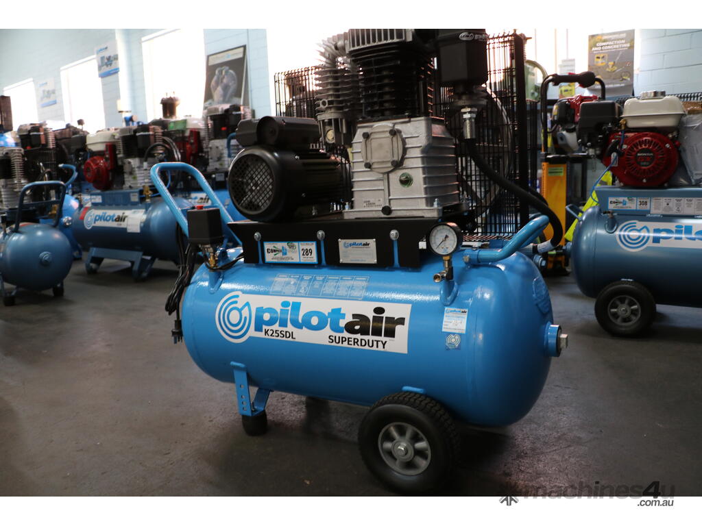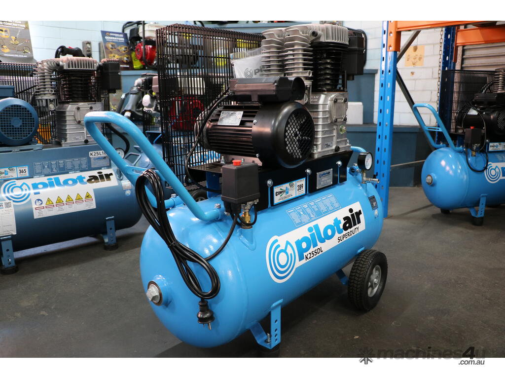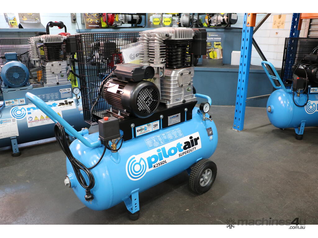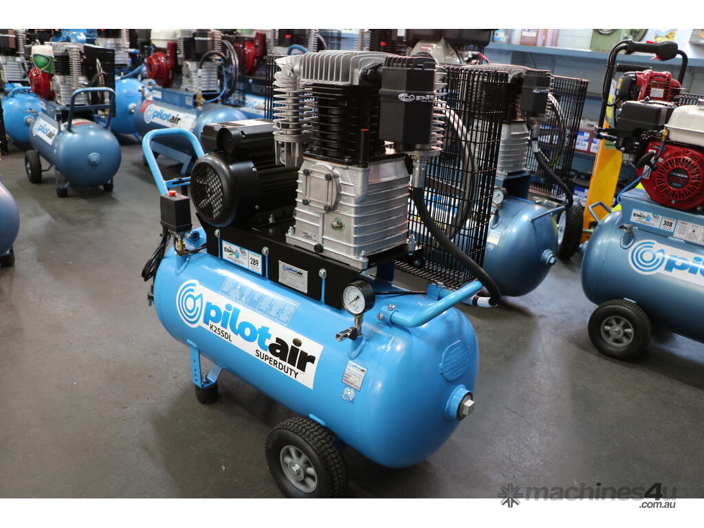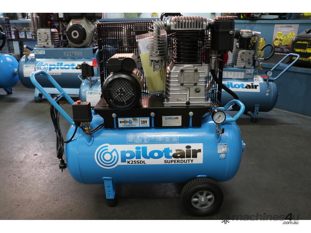 The K25SDL Classic Industrial Series 240V Reciprocating air compressor, a proud member of the Classic “K” series, is manufactured in Australia, upholding Pilot Air's hallmark of quality. This unit is engineered for heavy-duty operations, equipped with an electric motor overload to prevent motor damage and an oversized pump that enhances both efficiency and reliability.