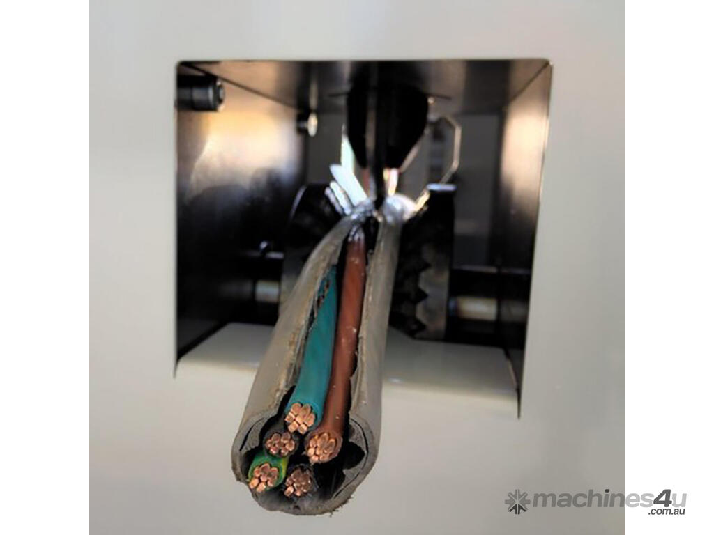 The KAB-V is a compact, powerful, versatile tabletop cable stripper designed to strip cable from 2mm up to 40mm diameter. As well as the use of a single rotating knife for large cables, this unit also features a set of rollers for thin cables to enable these to be effectively stripped as well. No other tabletop cable stripper combines these two functions. This is a 240V single phase unit that can plug into any standard power point.