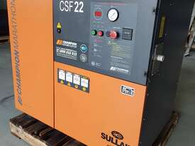 7). CHAMPION MARATHON CSF 22 by SULLAIR 22kw 30hp 415v 7.8 BAR 131CFM ROTARY SCREW COMPRESSOR Year 2004, MADE IN AUSTRALIA FOR AUSTRALIAN CONDITIONS, ITALIAN AIREND, GENUINE 10,957 HOURS, GOOD CONDITION. COSMETICALLY BLEMISHED BY OVERSPRAY. PRICE REDUCED ACCORDINGLY. REQUEST BROCHURE.