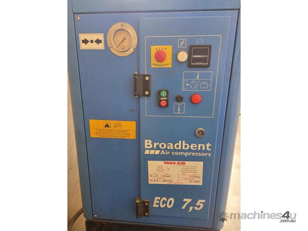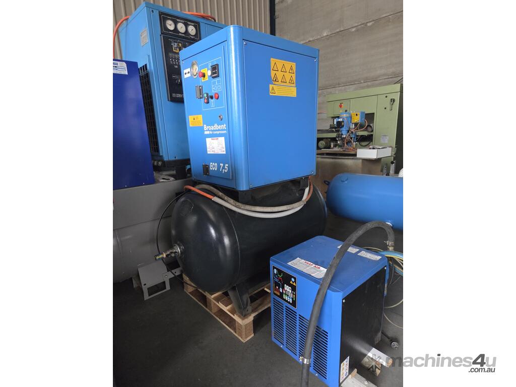 5). ANEST IWATA by BROADBENT ECO 7.5kw 10hp 415v 8 BAR 2-IN-1 FEATURED ROTARY SCREW COMPRESSOR Year 2012 MADE IN ITALY MOUNTED ON 270 LITRE AIR RECEIVER TANK, VERY COMPACT, GENUINE 18,990 RUN HOURS, HEAVY DUTY, TOP CONDITION, READY TO GO!