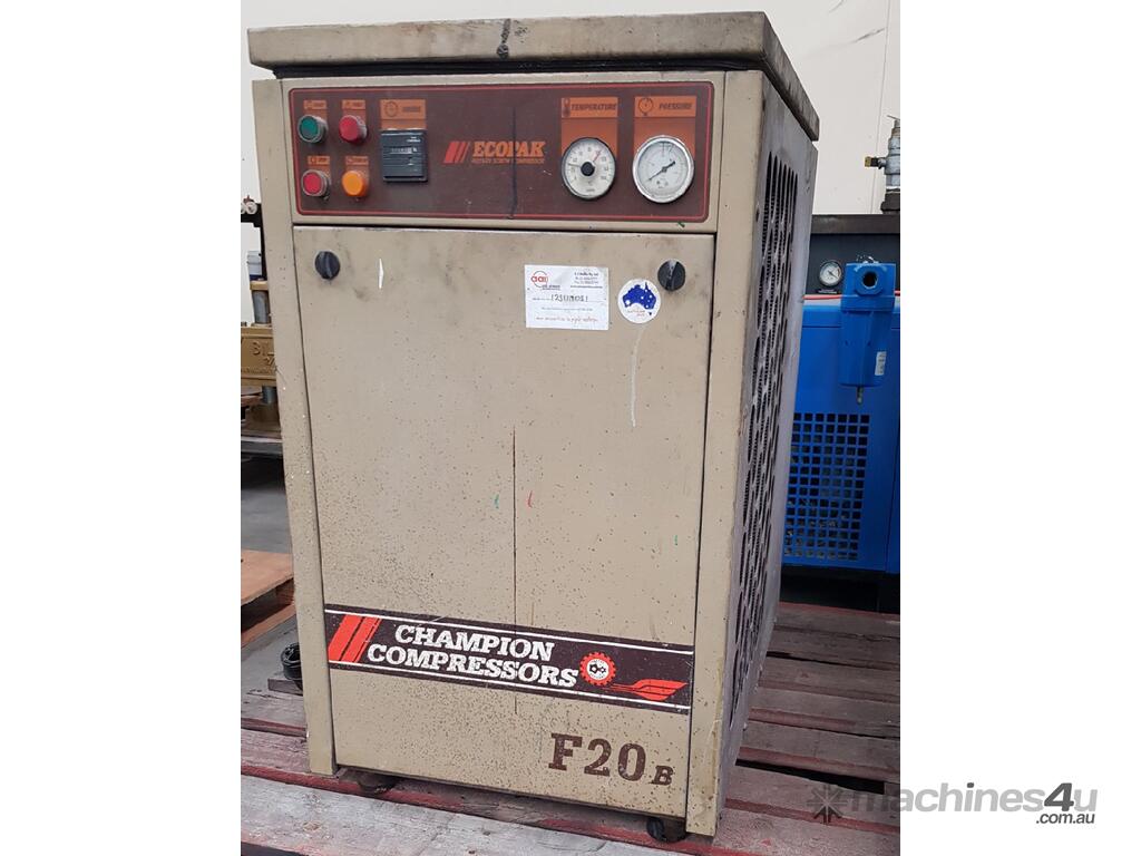 9). CHAMPION ECOPAK F20B 15Kw 20hp 415v ROTARY SCREW COMPRESSOR, MADE IN AUSTRALIA, 17,085 Hrs. UNTESTED