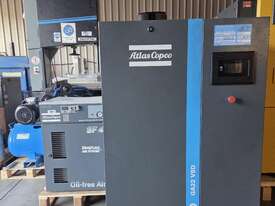6). ATLAS COPCO GA22 VSD 22kw 30hp 415v 8-13 BAR 138CFM VARIABLE SPEED ROTARY SCREW COMPRESSOR BASE MOUNT Year 10/2020, GENUINE LOW 5,500 RUN HOURS, REGULARLY SERVICED, RECENT OIL SEPARATOR REPLACEMENT. HUGE PRICE REDUCTION! TESTED SHOWING OIL LEAK FROM DIRECT DRIVE ELECTRIC MOTOR, REPAIRABLE.