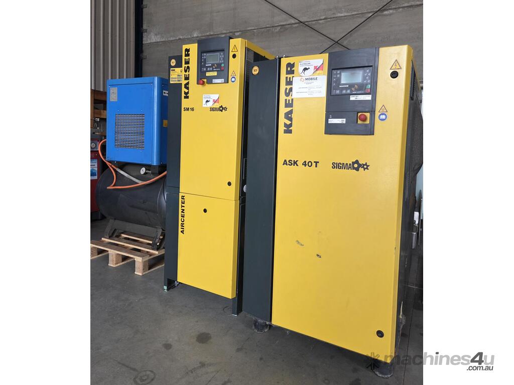 5). KAESER ASK 40T 22kw 30hp 8 BAR 2-IN-1 FEATURED ROTARY SCREW COMPRESSOR Year 11/2018 INCLUDING BUILT-IN REFRIGERATED AIR DRYER / FILTERS, SIGMA 2 ELECTRONIC CONTROLLER, RFID SERVICE OPTION INCLUDING SWIPE CARD, MADE IN GERMANY, HEAVY DUTY, SUPER QUIET, GENUINE LOW 20,300 RUN HOURS, RECENTLY SERVICED, 1 OWNER, TOP CONDITION. REFER ATTACHED BROCHURE. REQUEST EXTRA PHOTOS. 1/2 NEW PRICE!