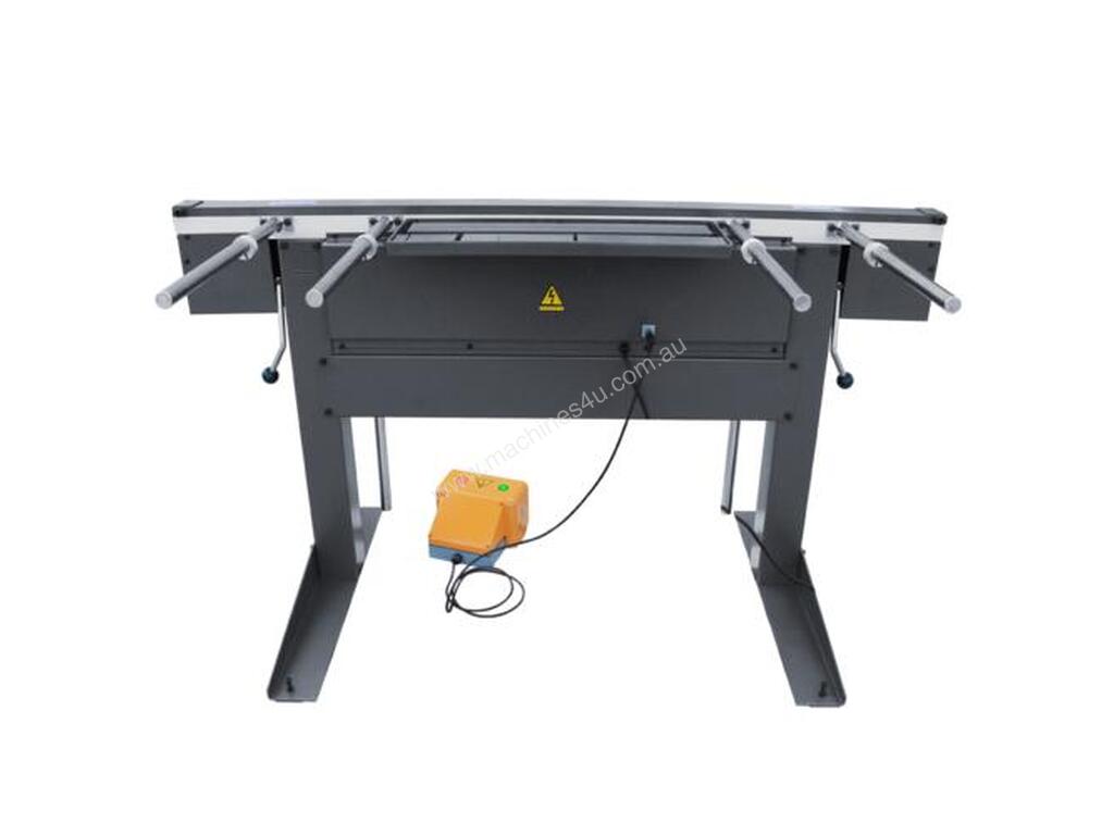 The bottom leaf’s bending extension can be removed for the tightest bends. The scaled stroke angle control can be set for repeat bends. Parts supports and adjustable back gauge for production runs, easy to use gap adjustments on the clamping bars for different sheet metal thicknesses.