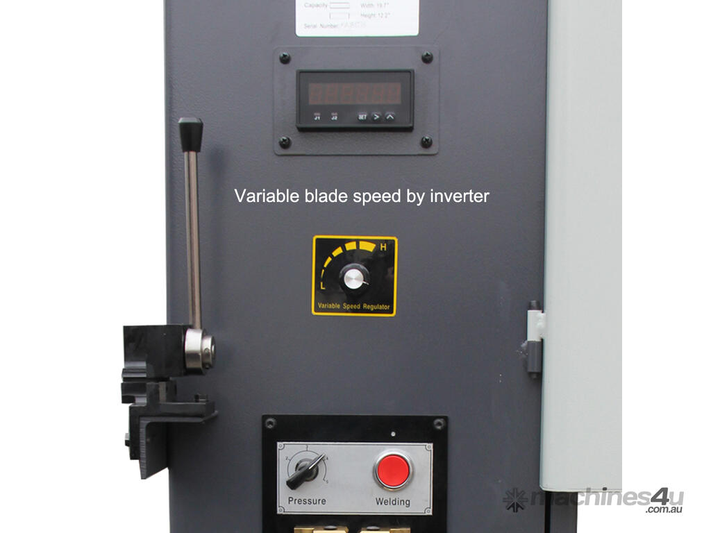 Standard with fully integrated blade welder, build-in grinder for finishing the weld joint