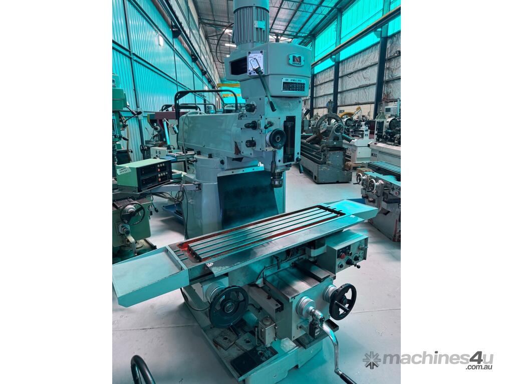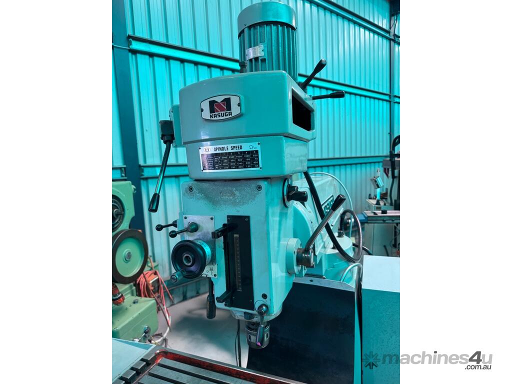The KASUGA FX-800 Vertical Milling Machine is a robust and precise machine designed for a variety of milling applications. It features a 1200mm x 300mm table, providing ample workspace, with X-axis travel of 800mm, Y-axis 440mm, and Z-axis 420mm for flexible machining operations.