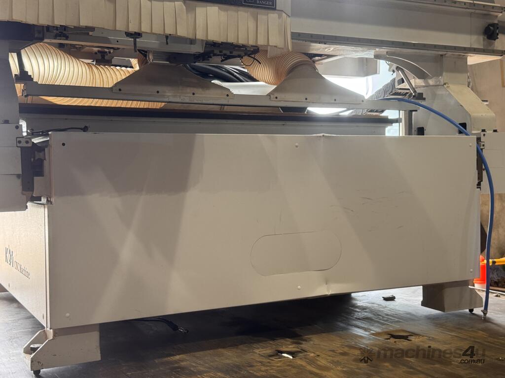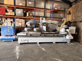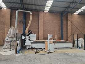 Heavy-duty flatbed nesting CNC router, commonly used for high-efficiency, automated panel processing in the woodworking industry. It is designed for tasks like cabinet making, featuring automatic loading, labelling, and unloading capabilities to increase productivity.