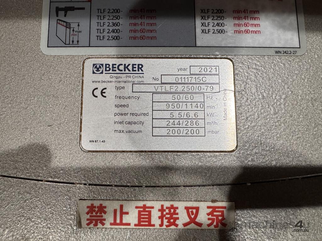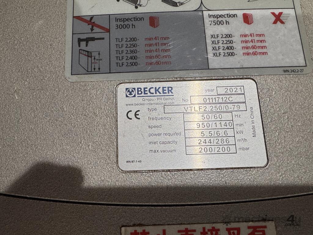 2021 Becker VTLF 2.250 oil-less rotary vane vacuum pump system.