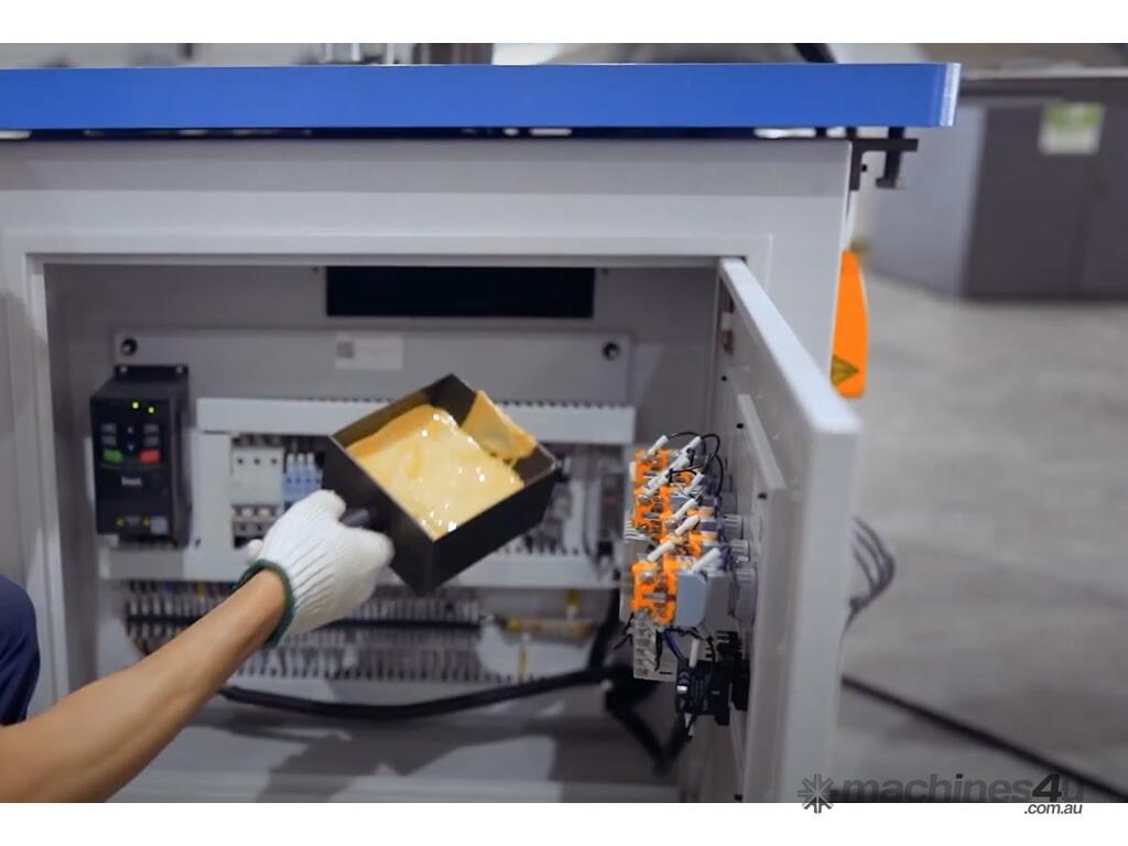 Quick removal overhead glue station and under-table glue residue tank for very easy glue colour and type changes.