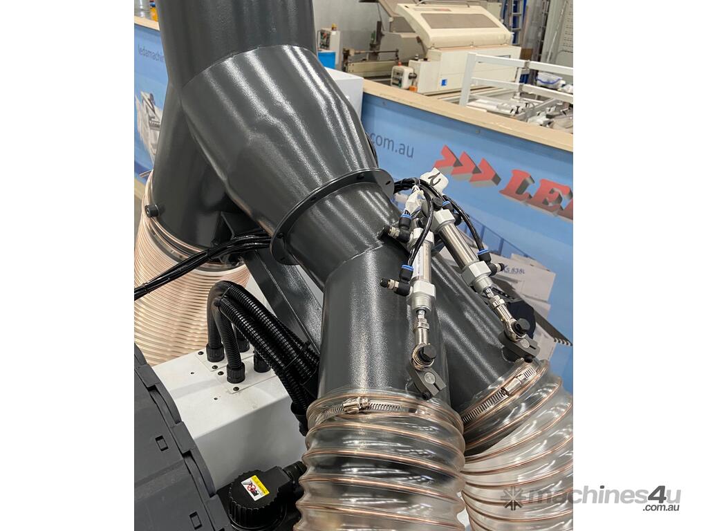 Supplied complete with a 5 hp extraction unit with flexible and rigid ducting package so your all ready to go. Auto extraction switching from Routing to drilling to unloading outlets is built in for maximum efficiency