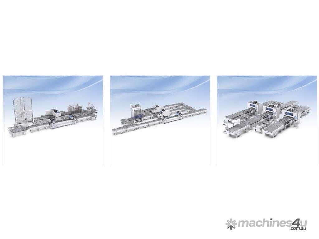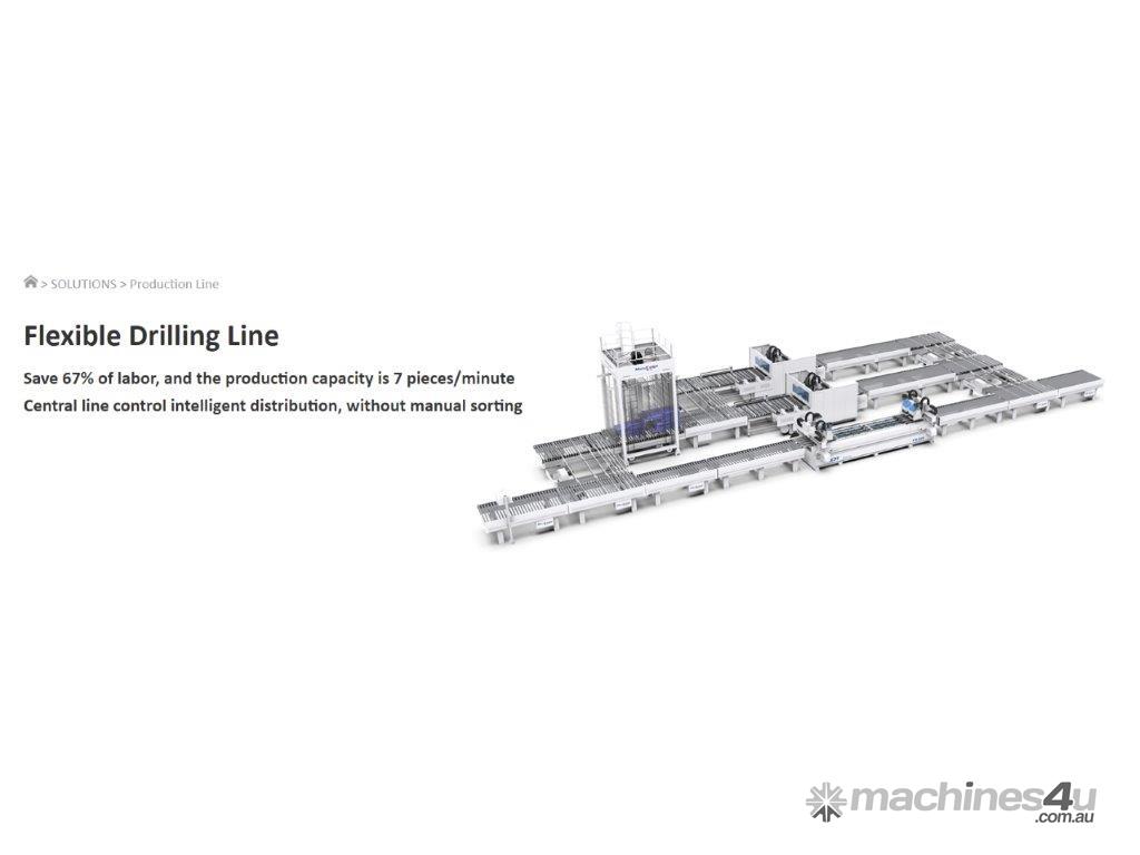 De-stack, convey, load, edge 1,2,3,or 4 sides, Rout and drill ( up to 6 sided drilling) off-load and stack.