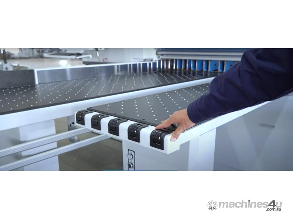 Twin pusher beams - pre-position your next panel while cutting the first panel.