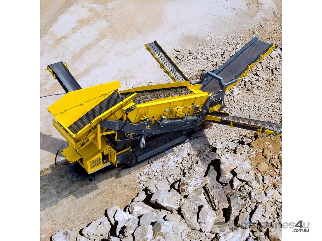 The K8h Screen is the most versatile scalper on the market with the biggest screen area. The K8h is designed for heavy duty scalping in quarry applications to ultra fine screening, handling ‘difficult’ to screen’ materials with ease. Available in hybrid electric drive and full electric options. It has the ability to make 4 products in one pass.
