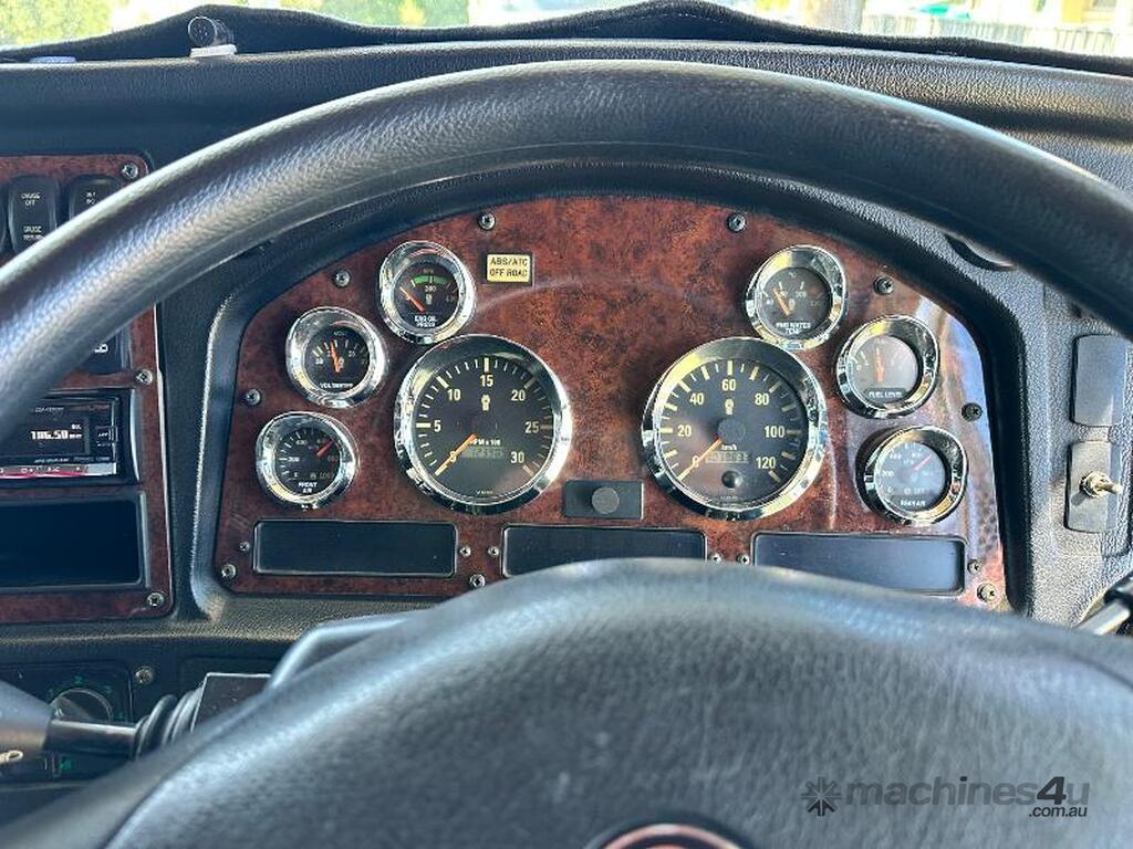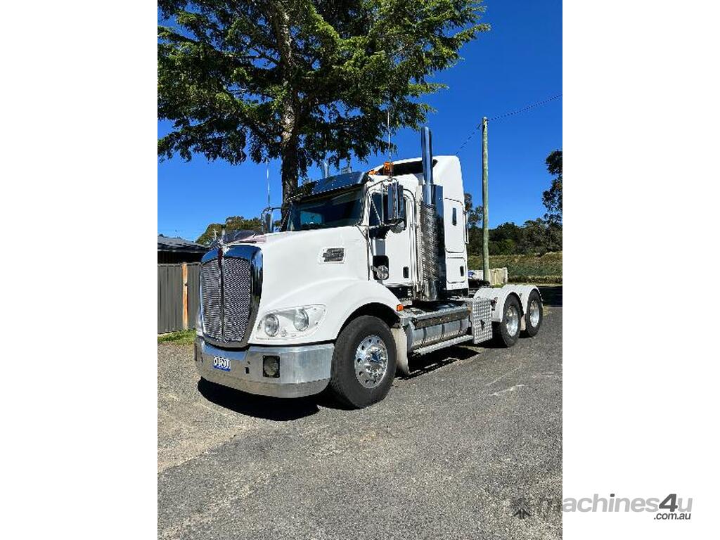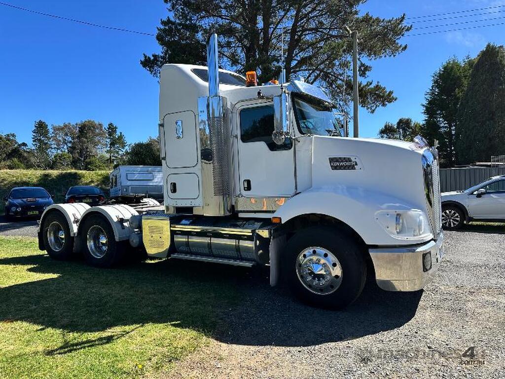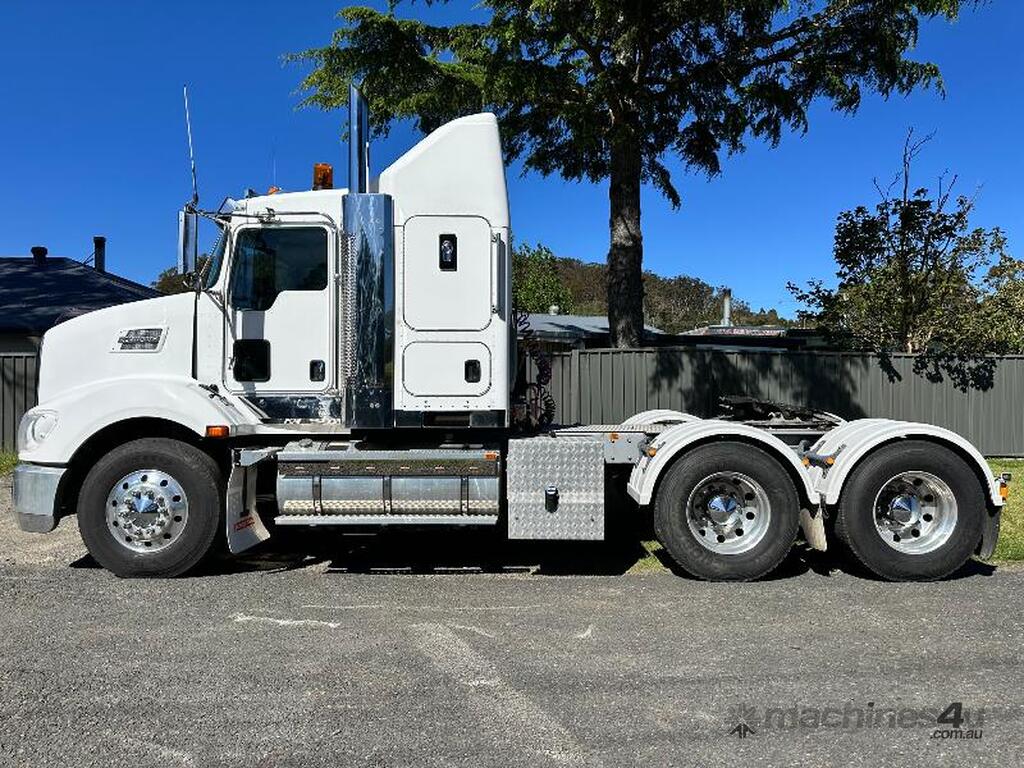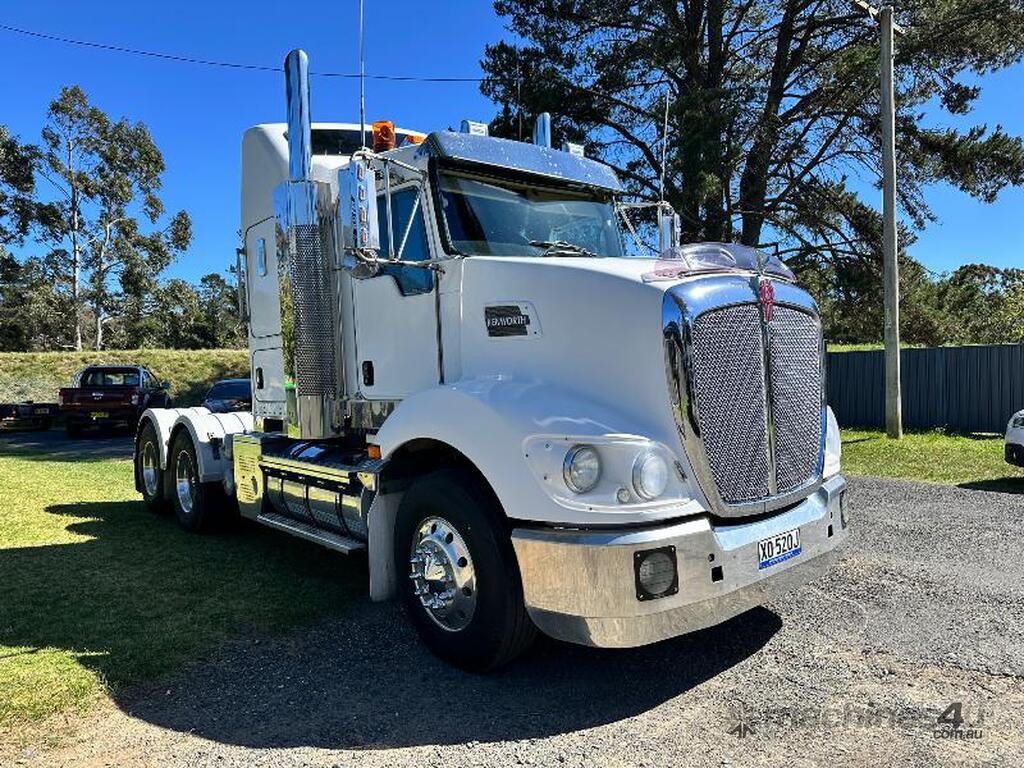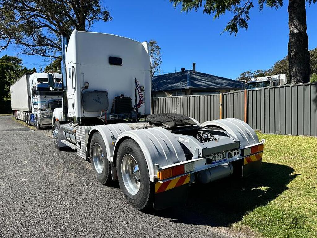 KENWORTH T409 PRIMEMOVER. YOM: 2014. VIN: 6F5000000EA45239. REGISTRATION: X0520J (24.01.2026). SHOWING: 703883 KM - 12390 HOURS (AS AT 10.10.2025) TARE: 8980 - GVM: 24700 - SINGLE TRAILER RATED. PACCAR 500 HP ENGINE - ADBLUE, (ENGINE NUMBER A178279), 18 SPEED ROAD RANGER, HYDRAULICS WITH RETURN, BALLRACE TURNTABLE, REAR AXLE CROSS LOCK, MURPHY GAUGE, VIESA COOLER, LED HEADLIGHTS AND DRIVE LIGHTS, UNDER BUNK FRIDGE, 2 X 80 CHANNEL UHF RADIOS, AM/FM RADIO, BEACON LIGHTS, NEW ISRI DRIVERS SEAT, DG SETUP FOR GAS. A VERY WELL MAINTAINED VEHICLE AND HAS DONE LINE HAUL WORK ONLY BY THE CURRENT OWNER. USED. INSPECTION RECOMMENDED.