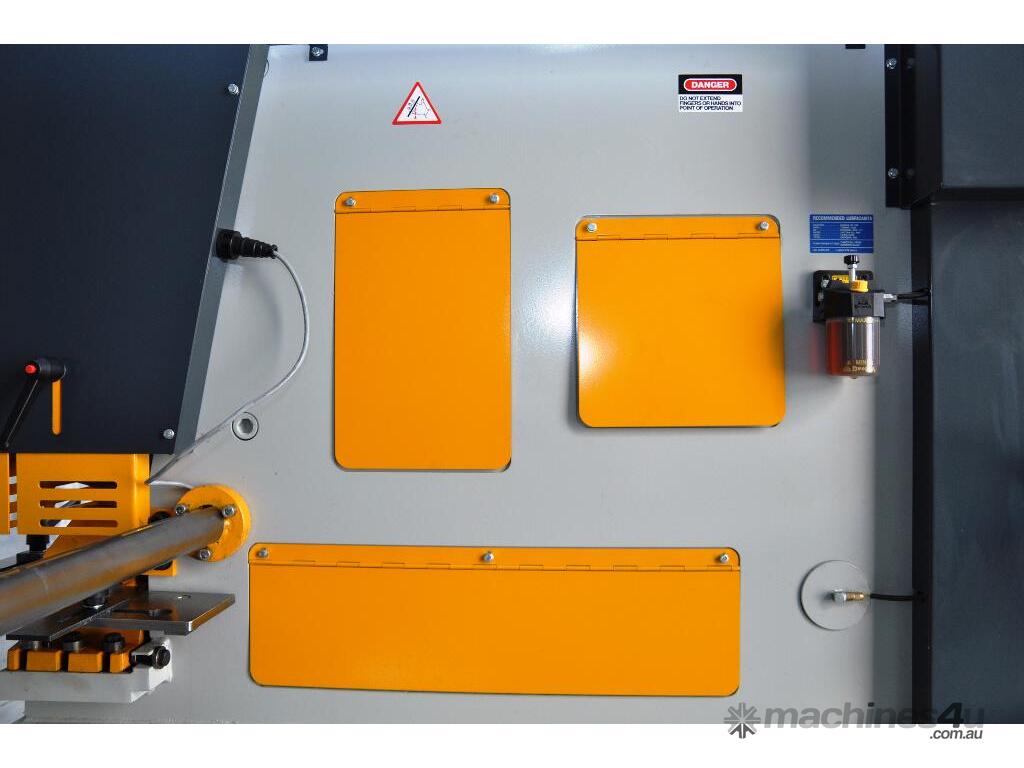 Free standing on a suitable floor, they just require electrical connection to be ready for work. For two operator utilisation, the hydraulic system is activated by two shielded foot controls, one operating the punch end cylinder, the other operating the shear end cylinder. The shear cylinder provides the power to the 3 shearing stations and the notch stations.