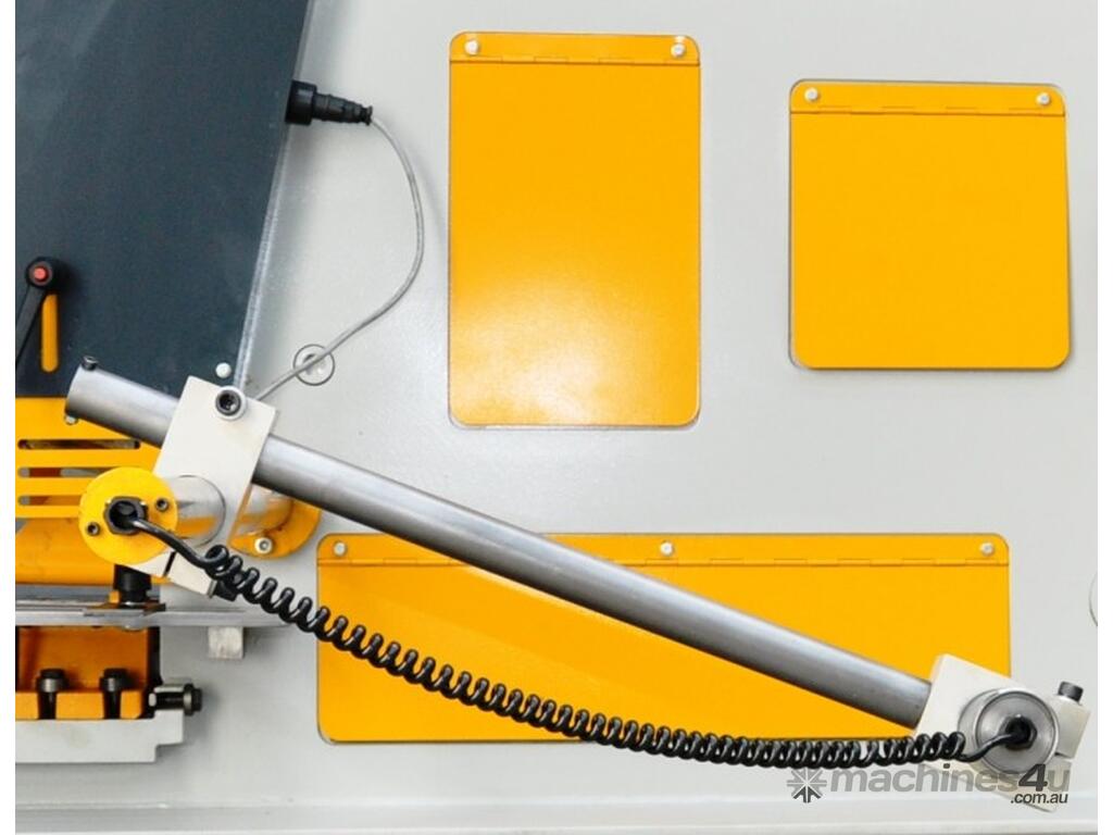 Free standing on a suitable floor, they just require electrical connection to be ready for work. For two operator utilization, the hydraulic system is activated by two shielded foot controls, one operating the punch end cylinder, the other operating the shear end cylinder. The shear cylinder provides the power to the 3 shearing stations and the notch stations.