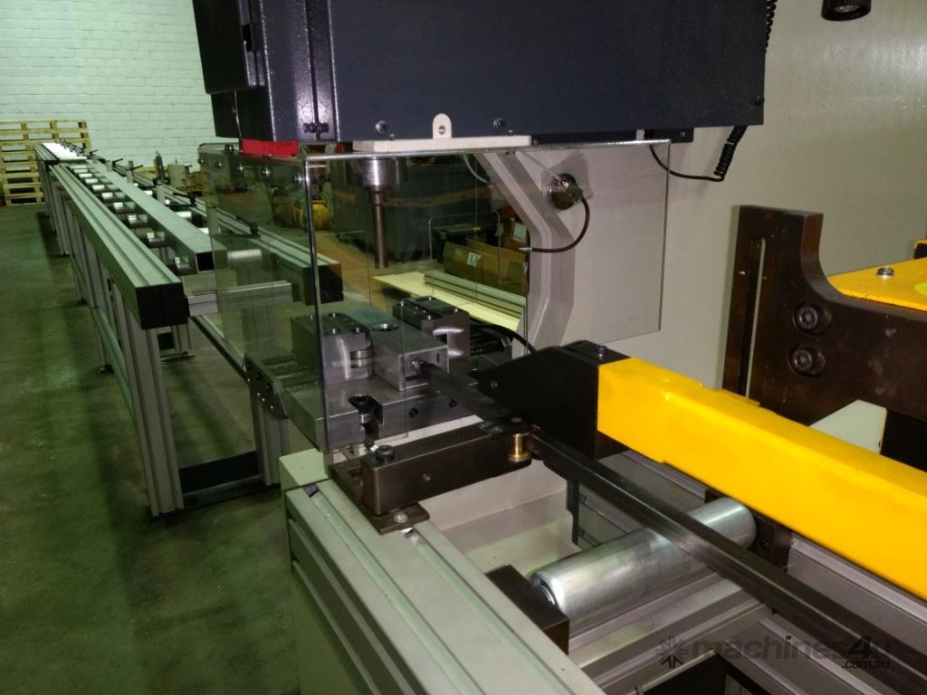 The unit will punch tube from 25 mm to a maximum 150 mm outside dimension on one side, and up to 8M long. (max 7.6m punching) Tubes up to a maximum of 80 mm outside dimension can be punched right through (top and bottom) in 1 hit