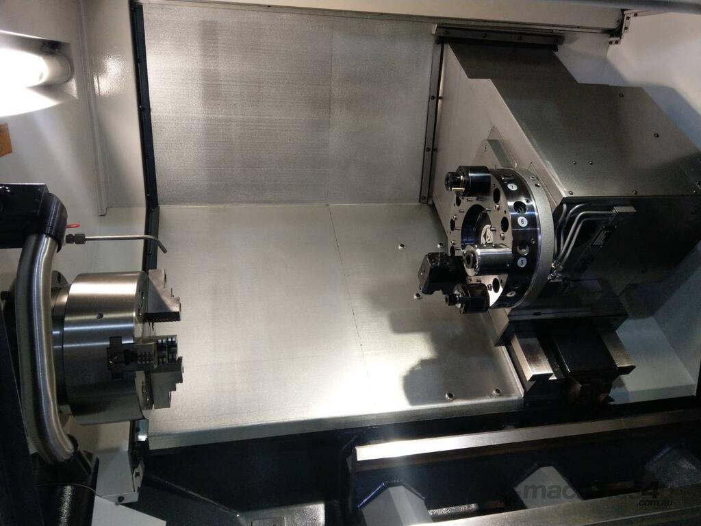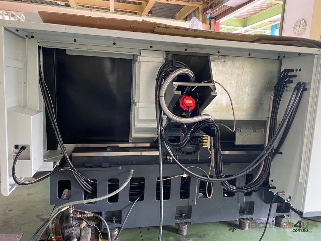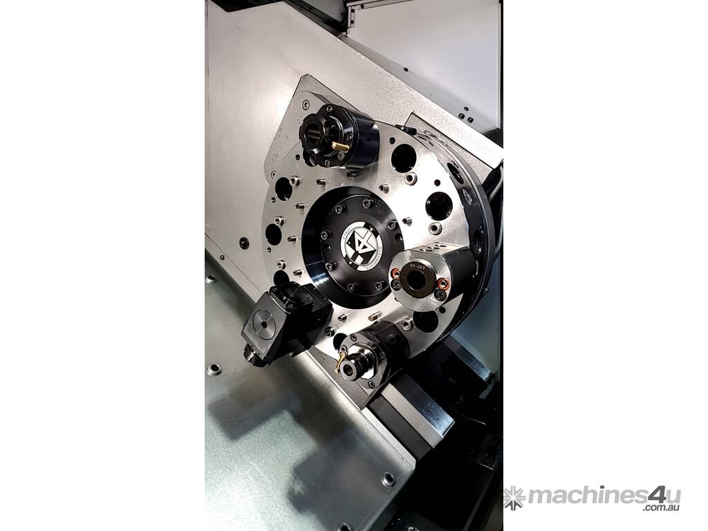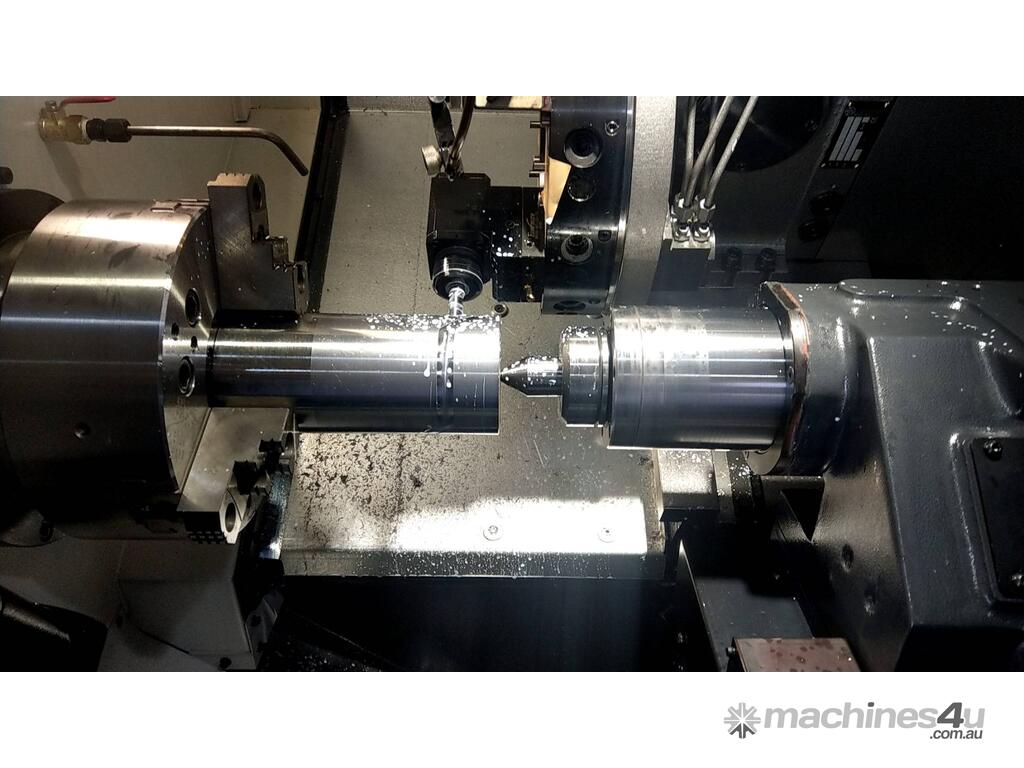 Supplied standard with Fanuc controls, V10 servo tool turrets, hydraulic tailstock quill and swarf conveyor.