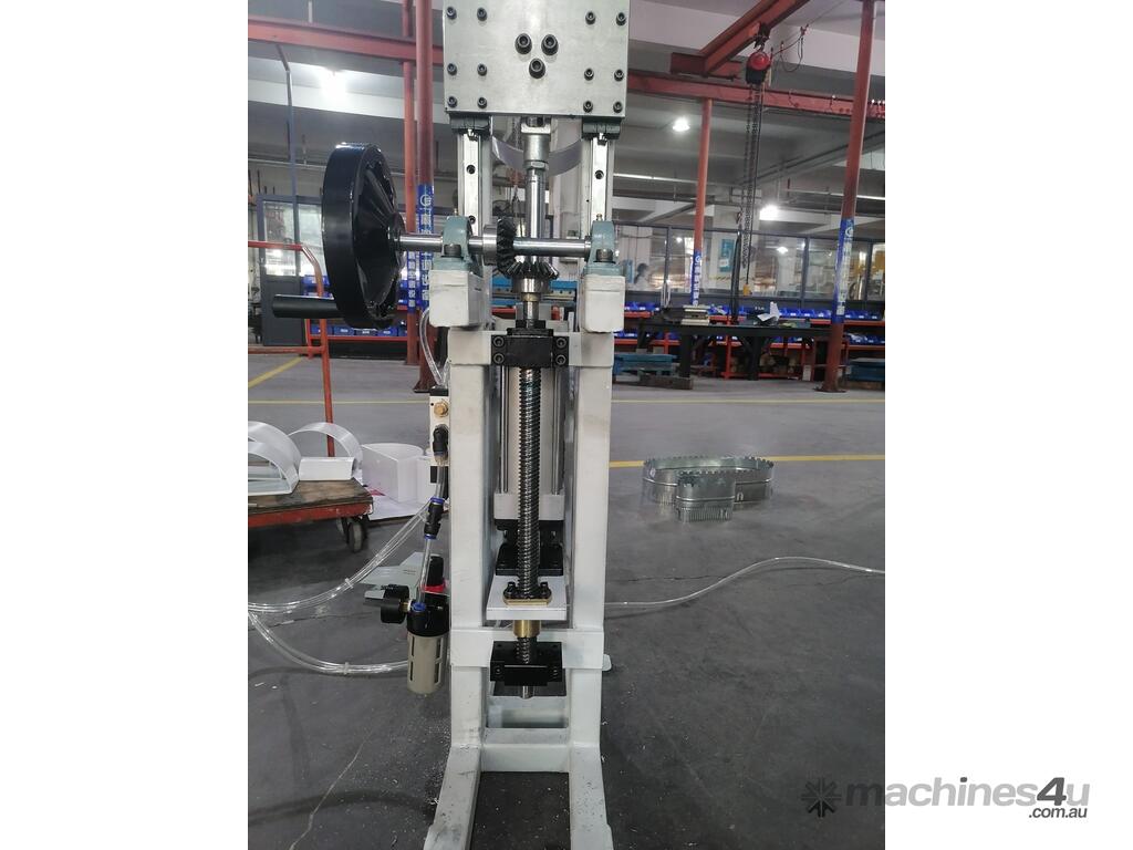 The ovalizer has manual adjustment using a hand wheel on a acme thread to change lengths of the extension and the removable dies are simply one bolt and a locating pin making change over times for different I.D and O.D of the ovals seconds.
