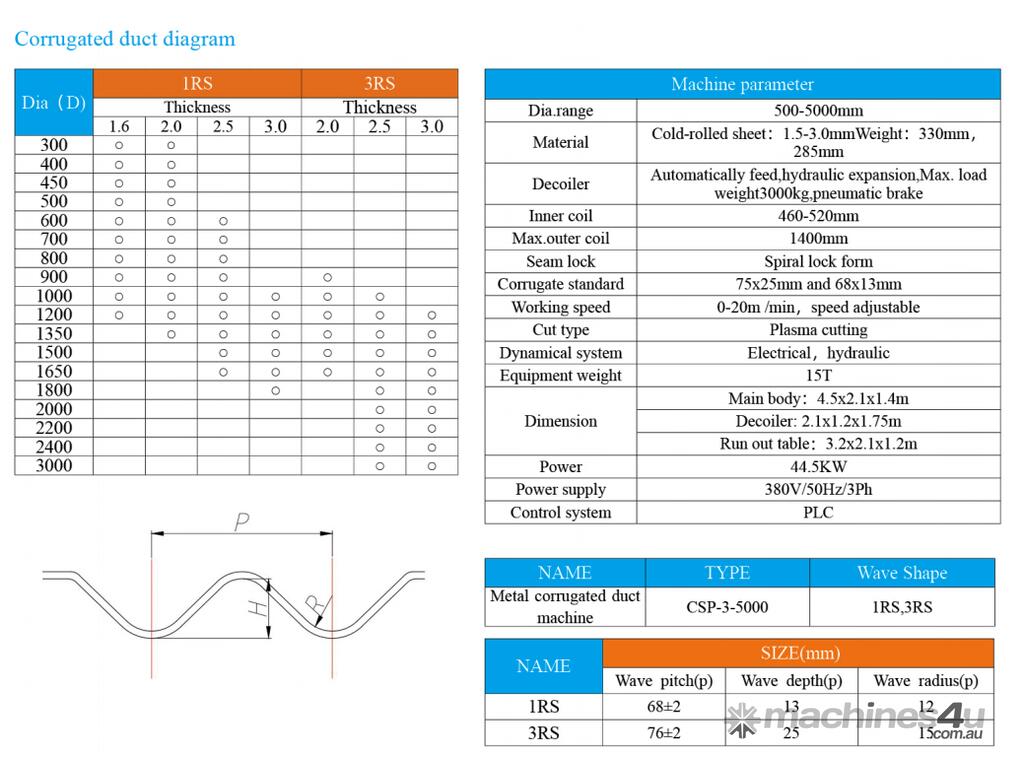 This equipment adopts cold-strip steel sheet to make various of spiral corrugated duct standard. Metal spiral corrugated duct can use in culvert,wind electricity foundation trench, bridge pile foundation,urban drainage etc .It has advantages of easy installation, in favour of environment protection,high strength, long period of using life,low cost etc.It replaces reinforced concrete construction, the development prospect is very wide.
