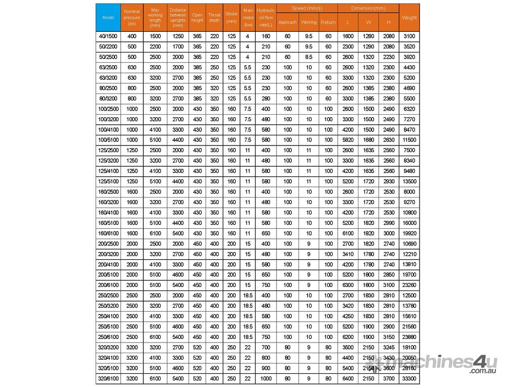 Options:back gauge with ball screw and linear guide. WA67Y seriestorsion synchronization press brake's parameter table.