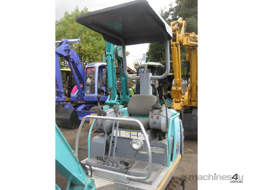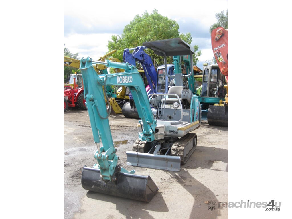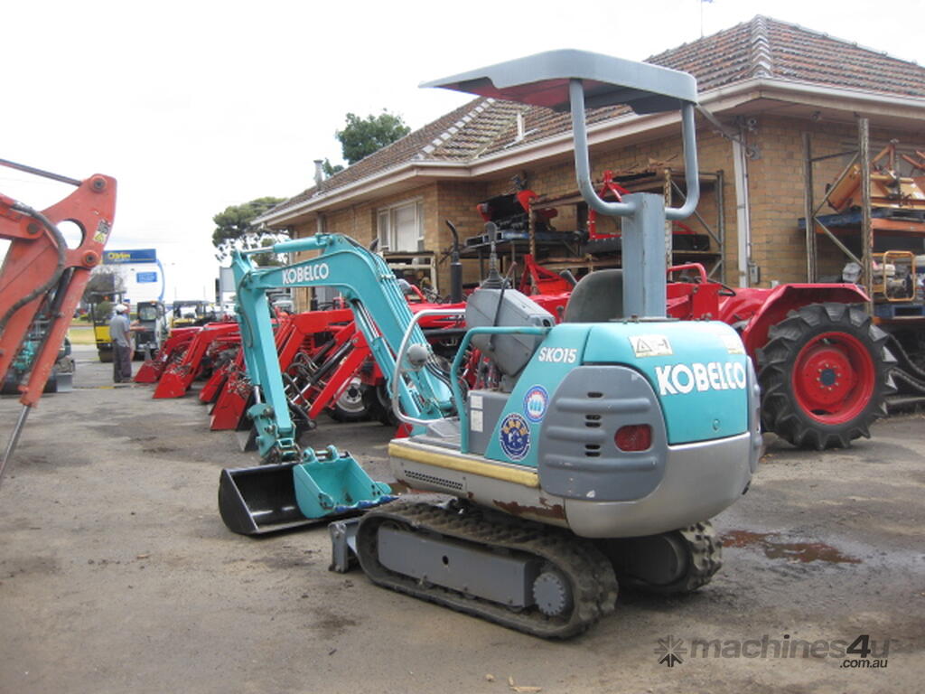 Kobelco SK015, serial No. 03772, canopy, 1.5 tonne, wrist control, expandable tracks, 400mm digging bucket, facility for hammer pipes, 1560 hours, $14,950.00 + GST. Package deal with new half hitch, new 900mm mud bucket, $15,950.00 + GST